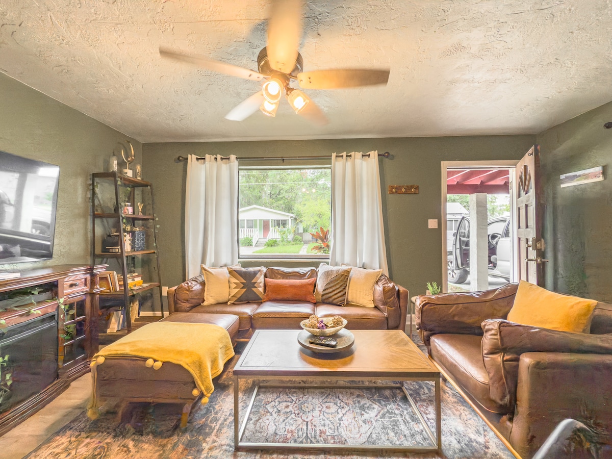 Welcome! We heard your feedback and gave this home a refresh to make it even more cozy and comfortable for your stay. Our spacious 3-bedroom, 2-bath retreat sits right in the heart of downtown Gainesville—just 4 minutes to UF and within walking distance of the best local bars and restaurants. Perfect for families, groups, or game-day getaways, the home features a fully equipped kitchen, a backyard firepit for evening hangs, and parking for 2–3 cars.