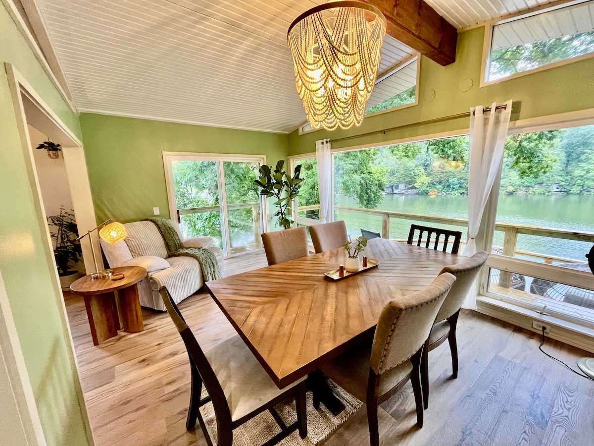 This fully stocked home welcomes you into the beautiful wooded views for ultimate peace and relaxation. There is a surprise waiting for you in every corner, from the modern yet rustic décor to the amazing deck which nestles beautifully into the trees just like a tree house. If you're feeling adventurous, a private yet steep trail will lead you to your own private dock where you can enjoy amazing views of a calm and quiet lake which you will almost always have to yourself.