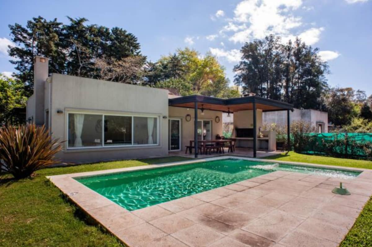 Casa en country San Carlos. Hermoso jardín de 1200m2, pileta cercada, buena sombra, quincho. 3 dormitorios. Excelente acceso desde Panamericana km 30. Dos restaurantes, canchas de deportes, colonia de vacaciones. Se hace saber que el inquilino deberá presentar antecedentes penales de todos los mayores que se alojen, ademas de firmar la aceptación de las normas del country.