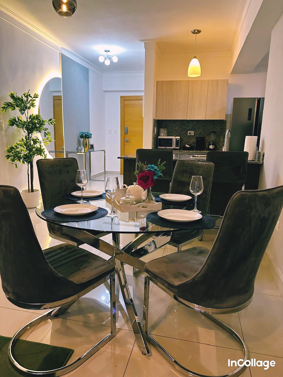This beautiful apartment has the furniture and utensils you need for a pleasant stay. It is located in one of the most modern and newly built housing towers in the City of Sto Dgo. With 2 levels of social areas of which you can enjoy its cinema room, gym, Lobby, furnished terrace, 2 independent Jacuzzi areas, playground for children and meeting room. The Tower has 24 hour security service and its common areas have security cameras. If you need food or transport serv. let me know and I recomend