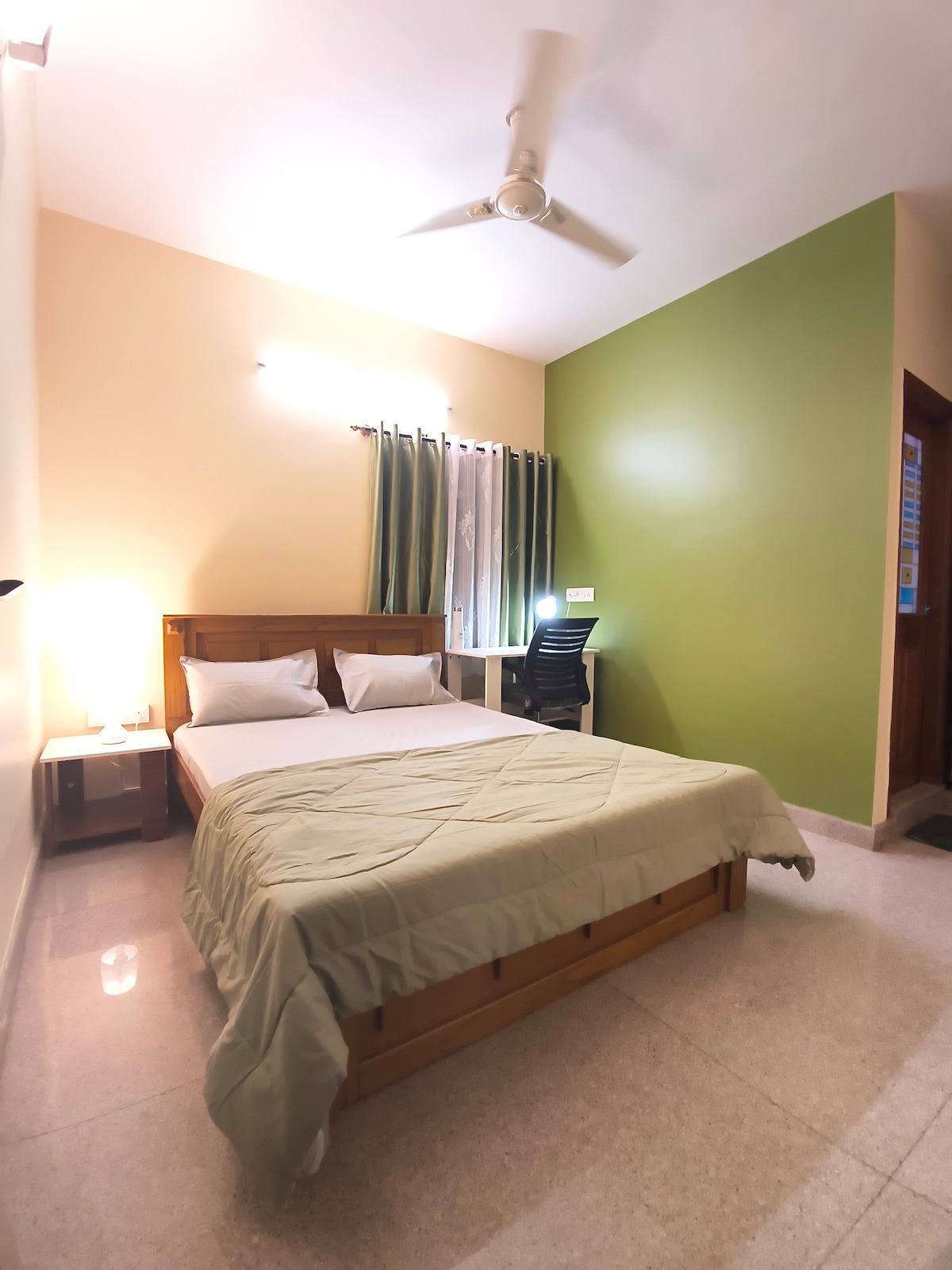 We would love to host you in our 1 BHK (EARTHY Homestay) that blends style with an earthy, peaceful vibe & unbeatable panoramas. - Balcony Oasis: Forest view + cinematic sunsets at 200 m - Prime Locale: 2 min to NIFT & 3 min to 27th Main’s cafés, boutiques & street‑food - Serene Interiors: Queen bed, ambient lighting & lush live plants - Work & Play: High‑speed Wi‑Fi, Large TV and fresh air Experience style, serenity & spectacular sunsets—all in one cozy retreat! - 5th floor (No Lift)