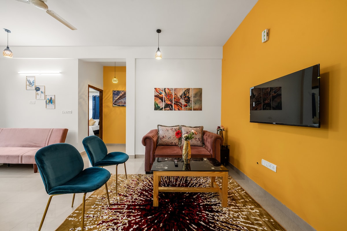 Discover a vibrant 4BHK nestled between Bellandur, Sarjapur, and HSR. Perfect for business trips, family getaways, or group retreats, this stylish apartment offers modern design, vibrant decor, and sunlit spaces, comfortably hosting 20-40 guests. Located close to tech hubs and exciting attractions. ✔ 4 Spacious Bedrooms with King Beds ✔ Fully Equipped Kitchen ✔ Lush Balcony for relaxation ✔ Daily Cleaning ✔ High-Speed Wi-Fi ✔ Inhouse Cook who stays Reach out to host for exclusive discounts!
