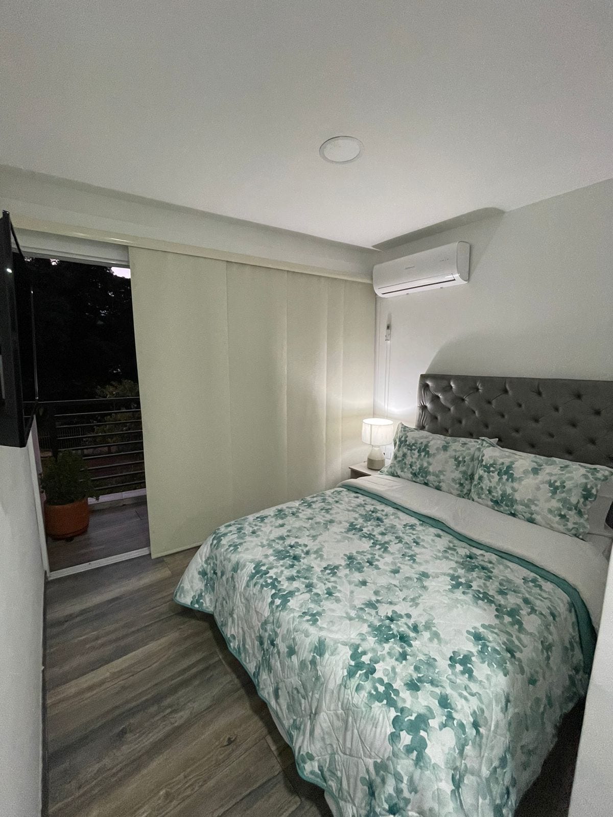 Experience modern comfortable living in our 2-bedroom first-floor apartment with spacious and lush interior gardens. Work comfortably at your desk. Enjoy the convenience of private parking. Large trees adorn the safe quiet street with a 24 hour security guard station in front of the building. Located in Cali’s southern Pampalinda district, only steps from a large park, University of Santiago de Cali, and the city's newest shopping and dining experience at Mall Plaza.