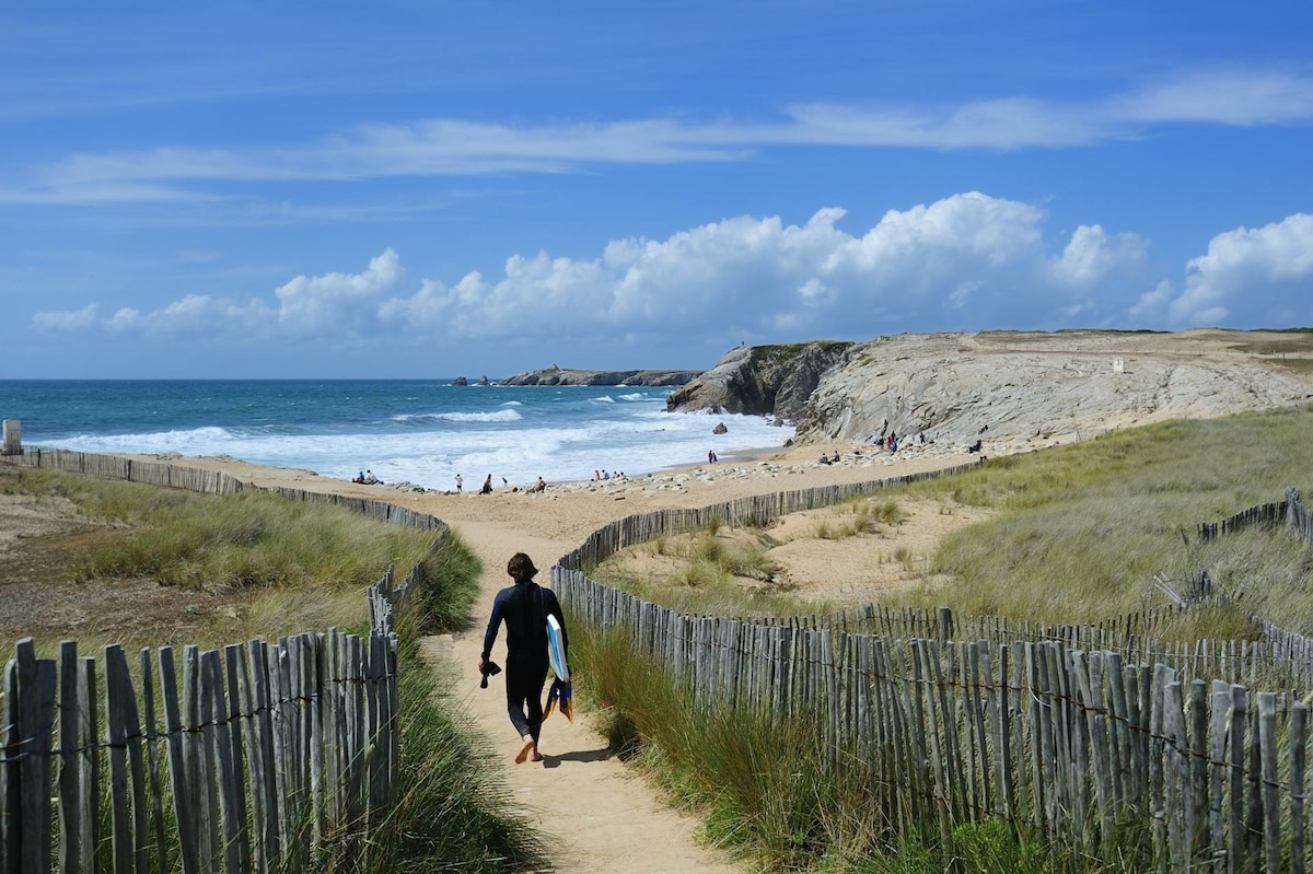 The house is located in a typical village of the wild coast (National Park) in the town of Quiberon. In the heart of the flora and a few steps from the coast (300m from the Beach Front), the show is continuous in summer as in winter. You can relax in peace while enjoying the many activities offered on the peninsula (Sailing, Boat, surfing and all water and Beach activities, horse riding, cycling, amazing views...). From Quiberon you can go to visit the Islands of Belle-île, Houat and Hoëdic.