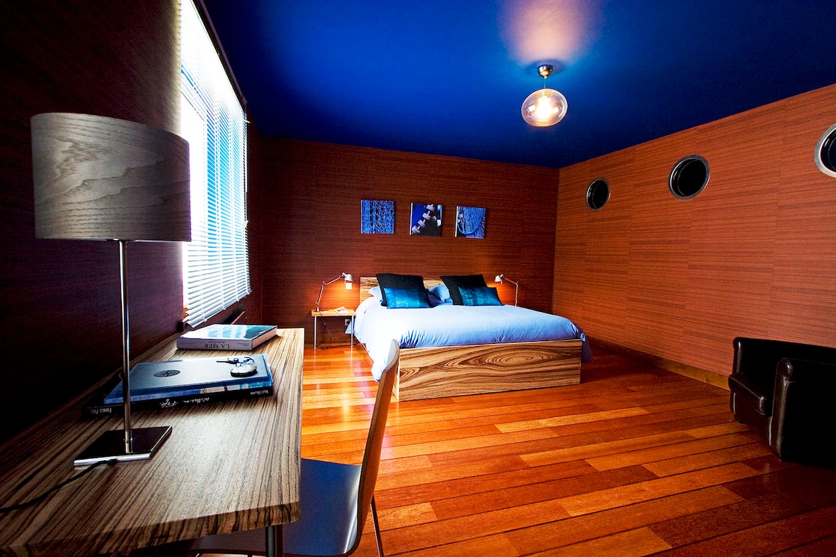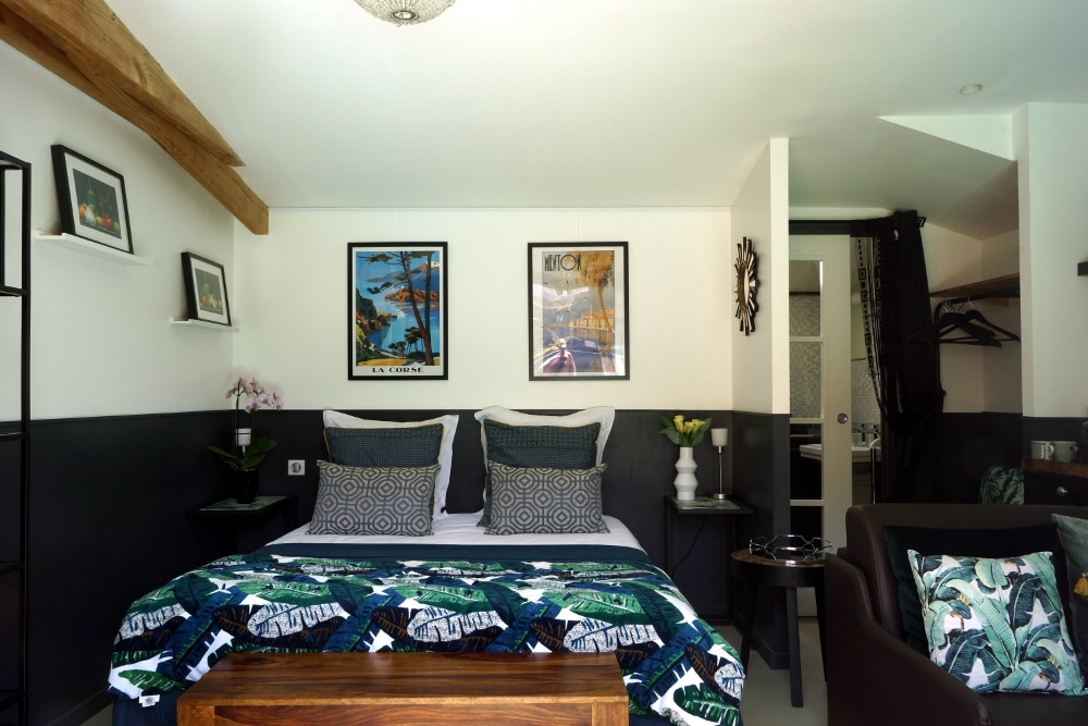 Je vous propose une chambre spacieuse de 14 m² (avec un lit de 160*200, la télévision et le Wifi gratuit) au 1er étage de mon habitation. Ce niveau vous sera réservé. Vous disposerez de votre salle de bains privative avec double vasque et WC. Si vous le souhaitez, vous pourrez également bénéficier du parking fermé. Les petits déjeuners sont servis dans la pièce à vivre ou en terrasse lorsque la météo le permet. Le prix comprend la taxe de séjour et le petit déjeuner pour 2 personnes .