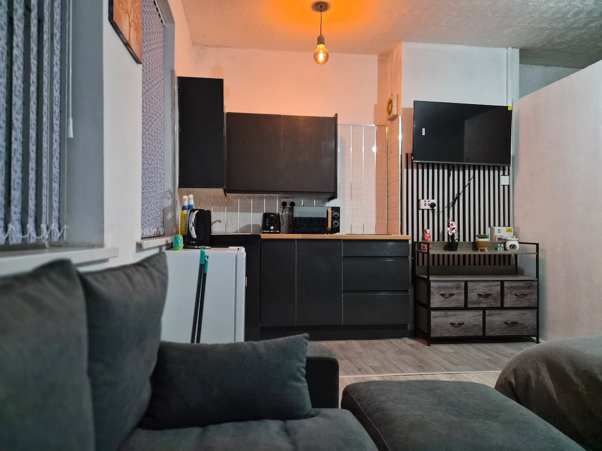 🌍🚗 There is free on street parking. 🚄 Levenshulme Train station is a 2 minute walk away (trains to Manchester city centre take approximately 7 minutes) 🚍 Bus stops heading towards Manchester city centre is across the road and the bus on the way back from the city literally drops you outside 😁👍 The studio apartment is on the 2nd floor, so you do have two flights of stairs, great cardio 💪 🛌 A modern bed with an upgraded thick matteress. New modern fitted gloss kitchen and shower room ❤️