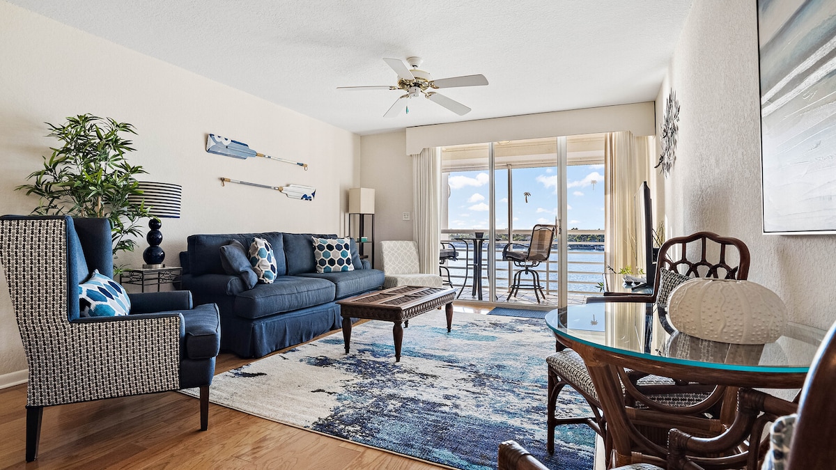 LUXURY AWAITS in this 2 BR/1 BA full kitchen condo with unobstructed PANORAMIC WATER VIEWS of the SPARKLING Intracoastal WATERWAY!! Just minutes to the Gulf of Mexico by BOAT or FOOT! Enjoy the SUNRISE off the PRIVATE DOCK or take a 3 minute walk to the beach to ENJOY BREATHTAKING SUNSETS!! The Intracoastal has many advantages including very calm water for: Fishing, Boating, Paddle Boarding, Kayaking, and More! We are also a 3 minute walk to pickleball, basketball, and a fenced in playground!
