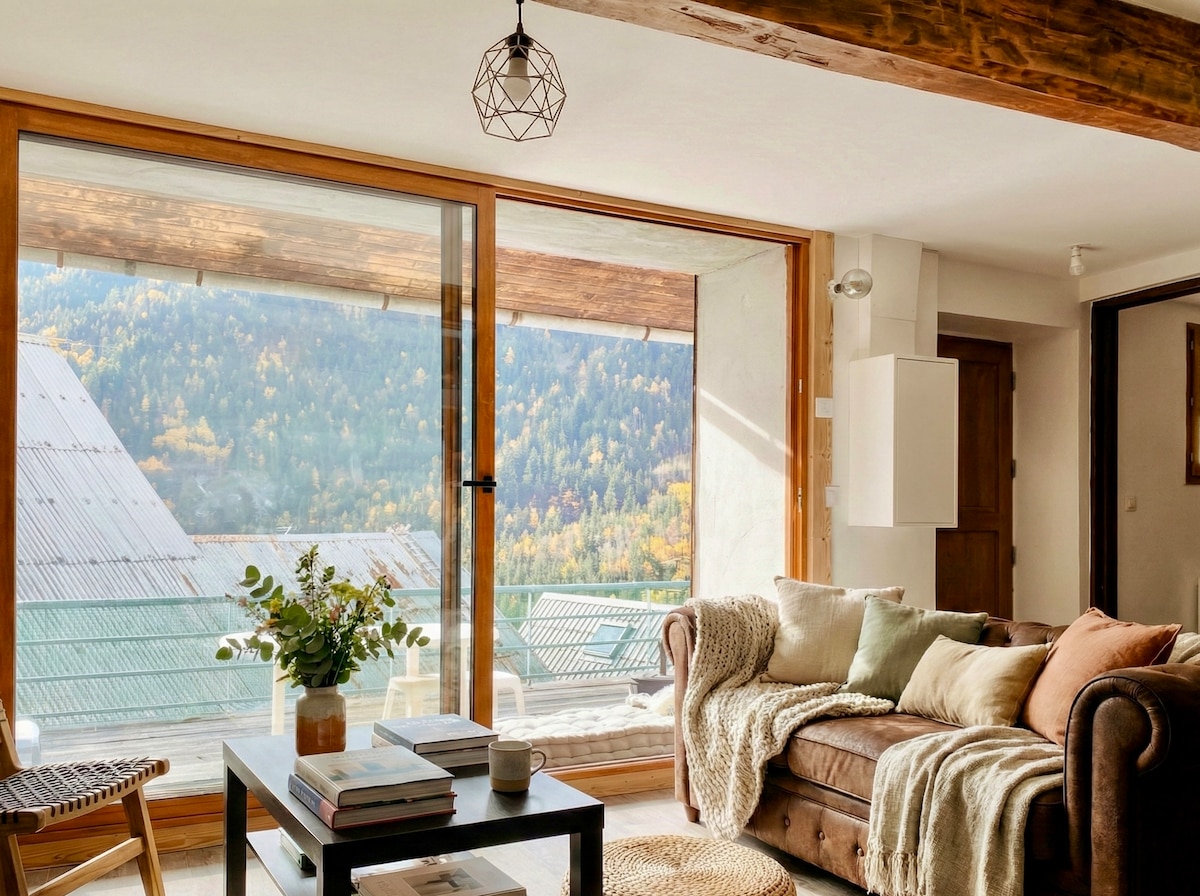 Quelle que soit la saison, venez vous ressourcer au cœur de l’Oisans dans un appartement de charme, situé au sein d'un hameau typique de montagne, à proximité de la grave des 2alpes et de l’alpe d’huez. Loin du tumulte des villes, profitez des grands espaces, de la nature, du calme et de son exposition plein sud, pour passer une agréable semaine. Arnaud et Laura seront heureux de vous accueillir dans ce bel appartement tout équipé de 40m2 avec sa terrasse exposée plein sud à 1300m d’altitude.