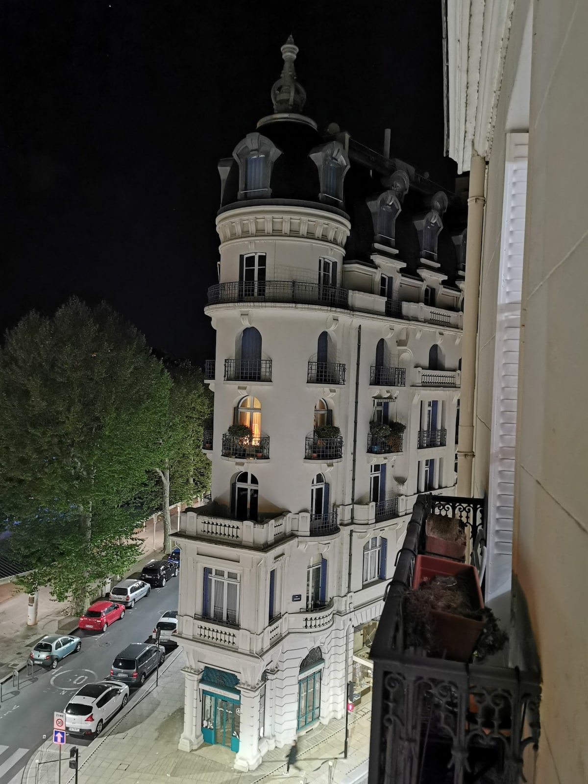 Logement élégant et central de 52m2+ terrasse privée de 20 m2 . Vue sur jardin dans "L'Albert 1er", Art Déco. Parfait pour cures, séjours touristiques ou professionnels. 1er étage avec ascenseur. 5 marches. Séjour-salon avec belle cuisine intégrée équipement complet, un îlot central pour repas. Deux canapés- lits 140 cm et 120 cm très bonnes literies. Une chambre avec lit 160 cm très bonne literie. Salle de bain avec baignoire. WC séparé. Placards. Télévision. Wifi. Chauff.elec performants.