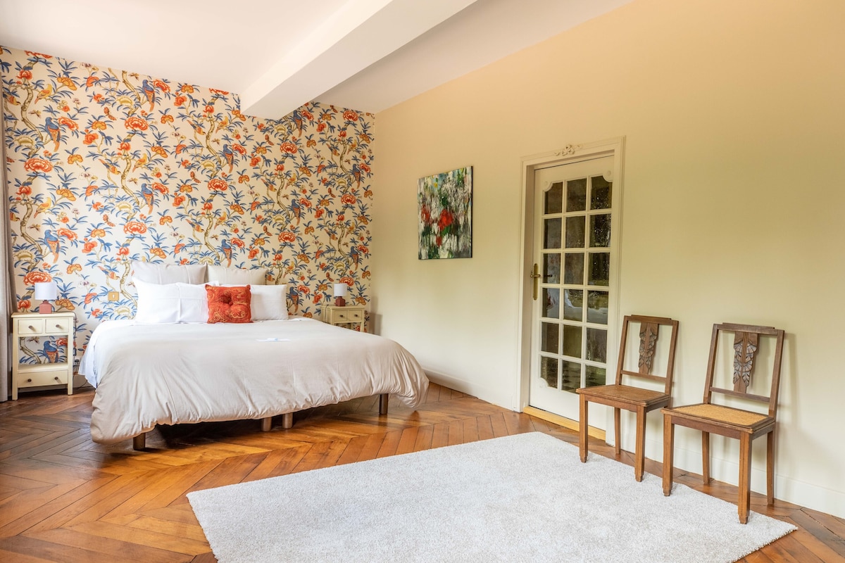 An enchanting late 19th century chateau set in the heart of its own grounds of 55 hectares . It is fully modernised and provides spacious bedrooms with modern bathrooms . The bedrooms overlook parkland , home to the proprietors racehorses . The chateau boasts superb facilities including a large outdoor pool and a wellness centre where guests can enjoy a relaxing massage , jacuzzi and sauna Breakfast is included in the room rate
