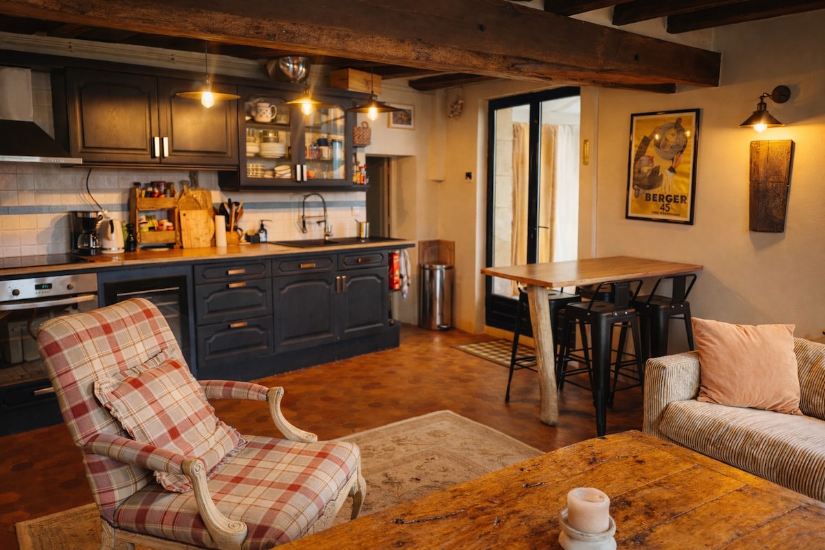 Maison 3 pièces, pierres et poutres apparentes. 8 min du centre-ville de Saumur dans village de charme. 60m2 en duplex, salon de jardin indépendant. Cuisine séparée, équipée avec Nespresso. Salon cosy avec canapé et bibliothèque. 1 chambre parentale avec TV. WC indépendant.SDB avec Douche. 1 chambre avec lit double. Rafraîchisseur d’air. Attention échelle de meunier sans rampe pour l'accès aux chambres. Ce logement ne convient pas, pour des raisons de sécurité, aux enfants de moins de 12 ans.