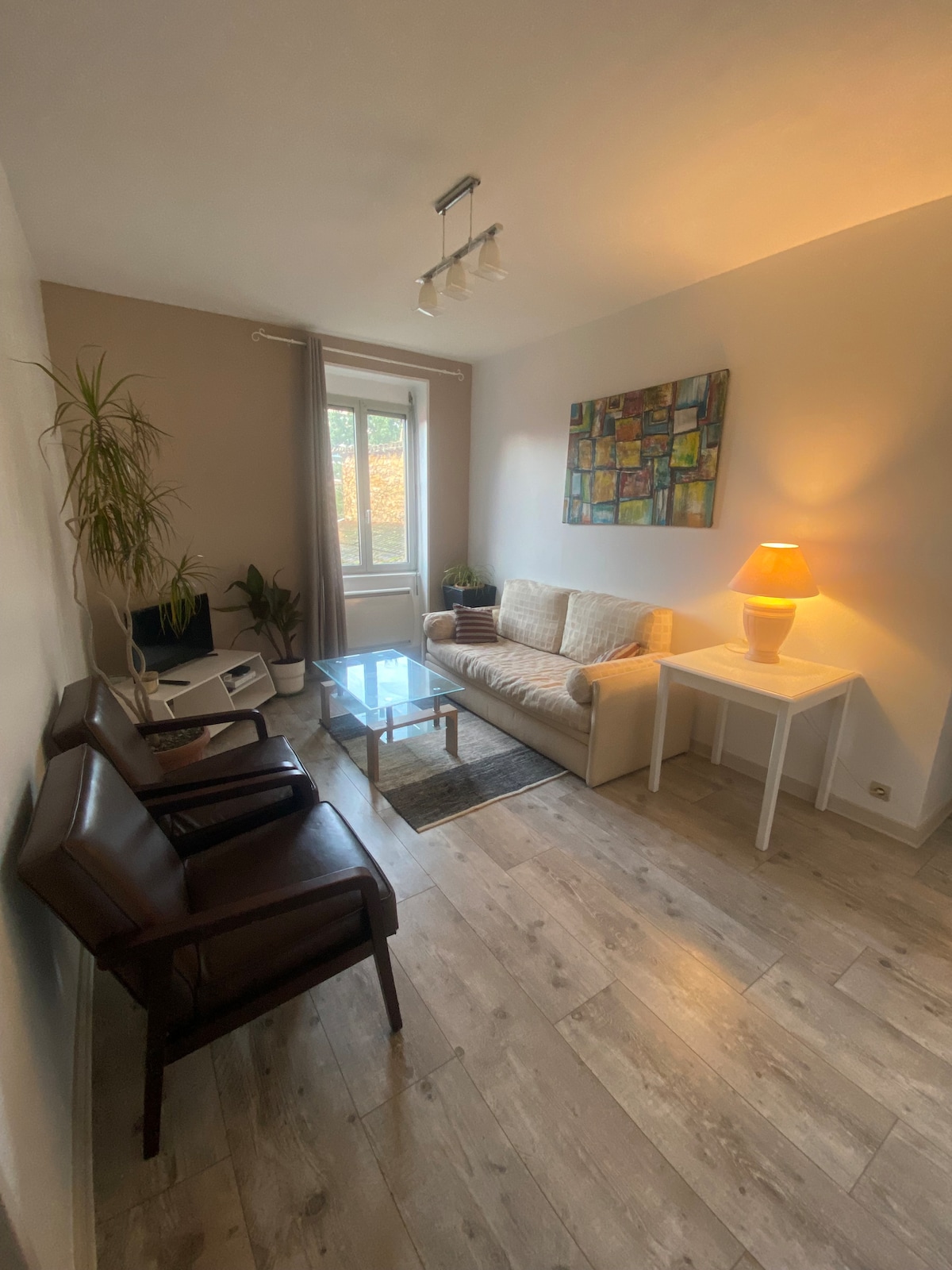 Détendez-vous dans ce logement élégant et chaleureux. À 30 minutes de Lyon en voiture, proche de la gare SNCF de Villefranche et du centre ville. Situé au 1er étage avec ascenseur, ce studio de 32m2 comporte : - terrasse de 8m2, - place de parking en sous-sol - salle de bain avec baignoire - toilettes séparés À disposition: - wifi - canapé convertible avec matelas 135/190cm, - literie - lave-vaisselle - lave-linge - micro-onde - frigo - machine à café - bouilloire - air fryer …