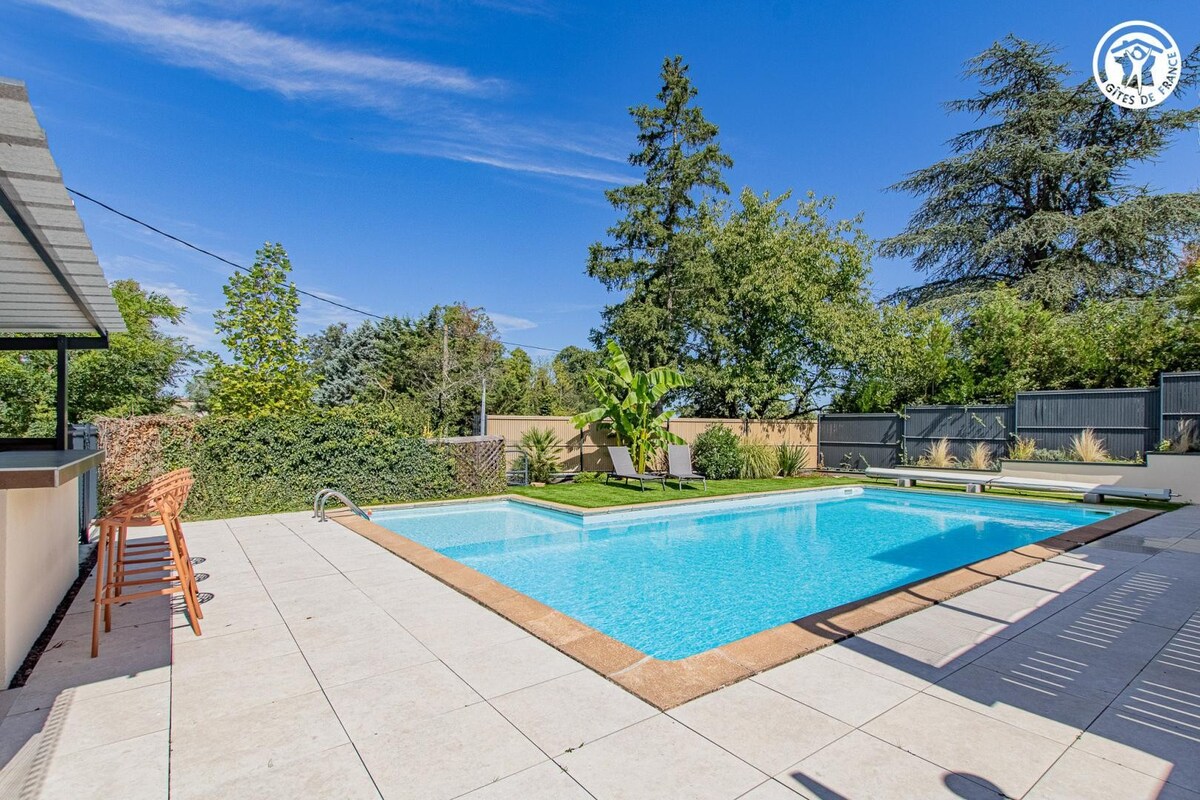 Ce studio neuf tout équipé, donnant sur grande piscine (chauffée de mai à septembre), idéalement situé, proche sortie n°30 de l'A6, de tous les commerces, cinéma, restaurants, du joli lac des sablons, entre Lyon et Mâcon, à 5mn du vignoble beaujolais. Vous vous sentirez chez vous avec 750 m2 de terrain. Le seul vis à vis : la propriétaire et sa famille qui pourront avoir envie de piquer une tête :-) Couchage 2 en mezzanine et 2 clic clac Wifi Idéal pour vacances ou location longue durée.