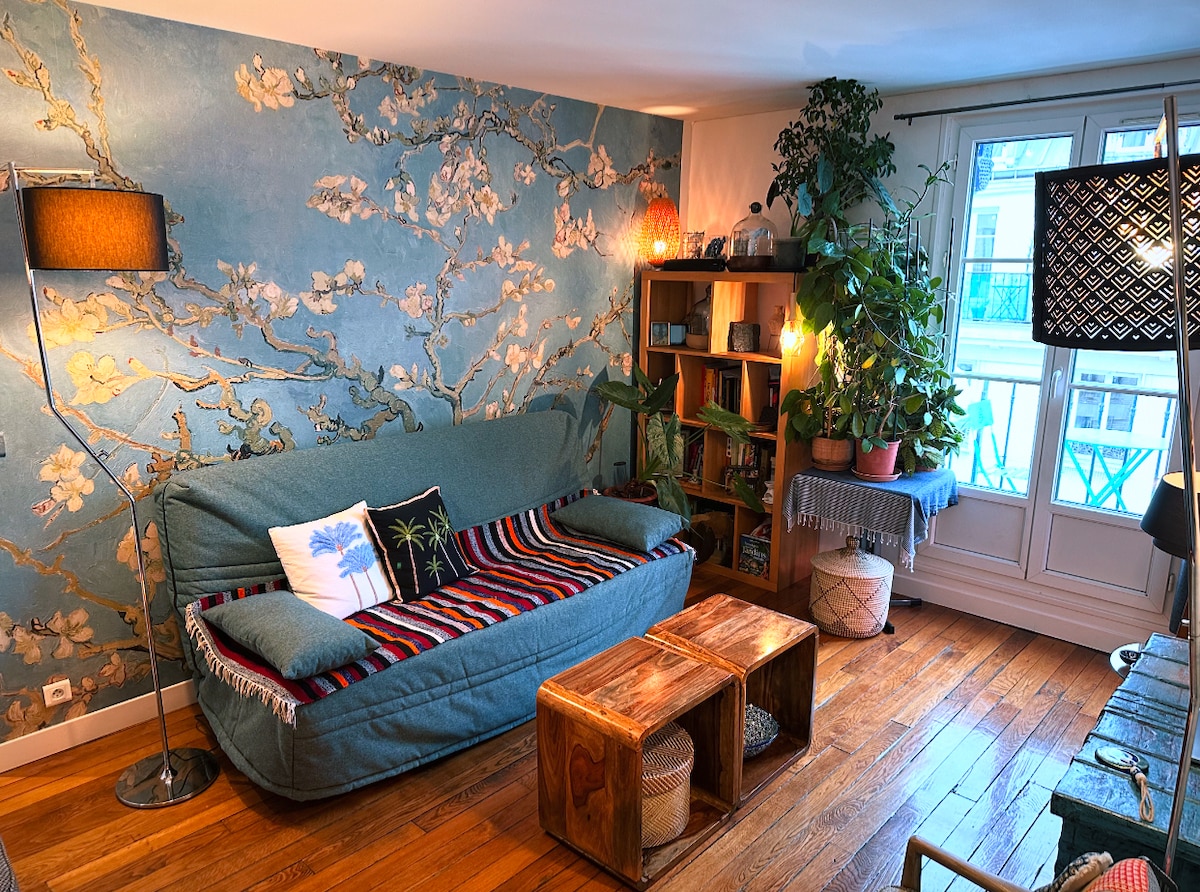 Charming and atypical 60sqm loft near Buttes Chaumont and Belleville Park in Paris. The loft is located in the heart of the busy and eclectic neighborhood of Belleville. It can accommodate 4 people (1 double bed and 1 queen size bed available). Wifi, dishwasher, washing machine, hairdryer and ironing set are also included. Towels and towels will be provided. For more information, please read the description below. :)