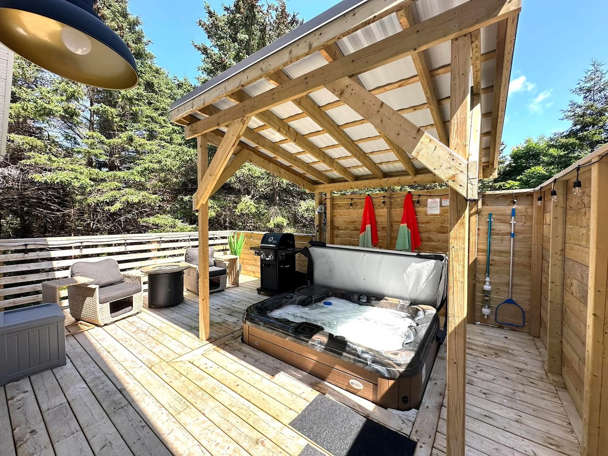 Escape to a private retreat in South River mins from historic Brigus. Nestled on a large private lot surrounded by towering trees, this luxury 3 person getaway offers the perfect mix of nature, privacy, and relaxation. After exploring the Avalon Peninsula from this central location unwind in the private outdoor hot tub. A 6-minute stroll brings you to The famous Newfoundland Distillery Company, for handcrafted spirits, delicious snacks and a sprawling view of Conception Bay.