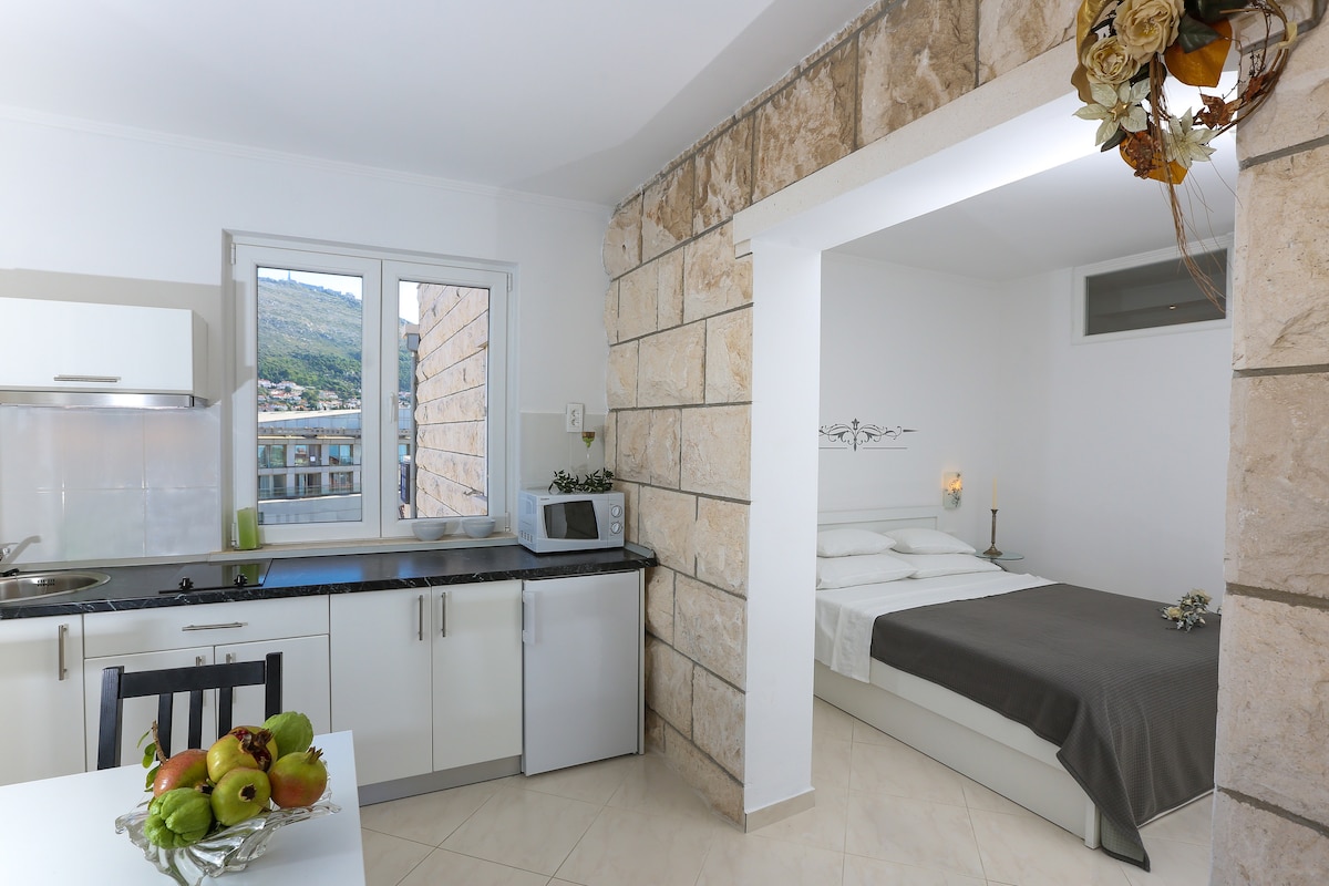 In a charming stone period house is our loft apartment, situated in a prestigious location within a stone's throw of the Old Town main gate (Pile Gate). Bright and colorful apartment has got its own separate entrance, offering stunning views of St.Laurence fortress and the Old Town of Dubrovnik. You will enjoy your private terrace with a garden, featuring a hot tub for those long summer nights. Centrally located within easy reach of shops, buses and various attractions.