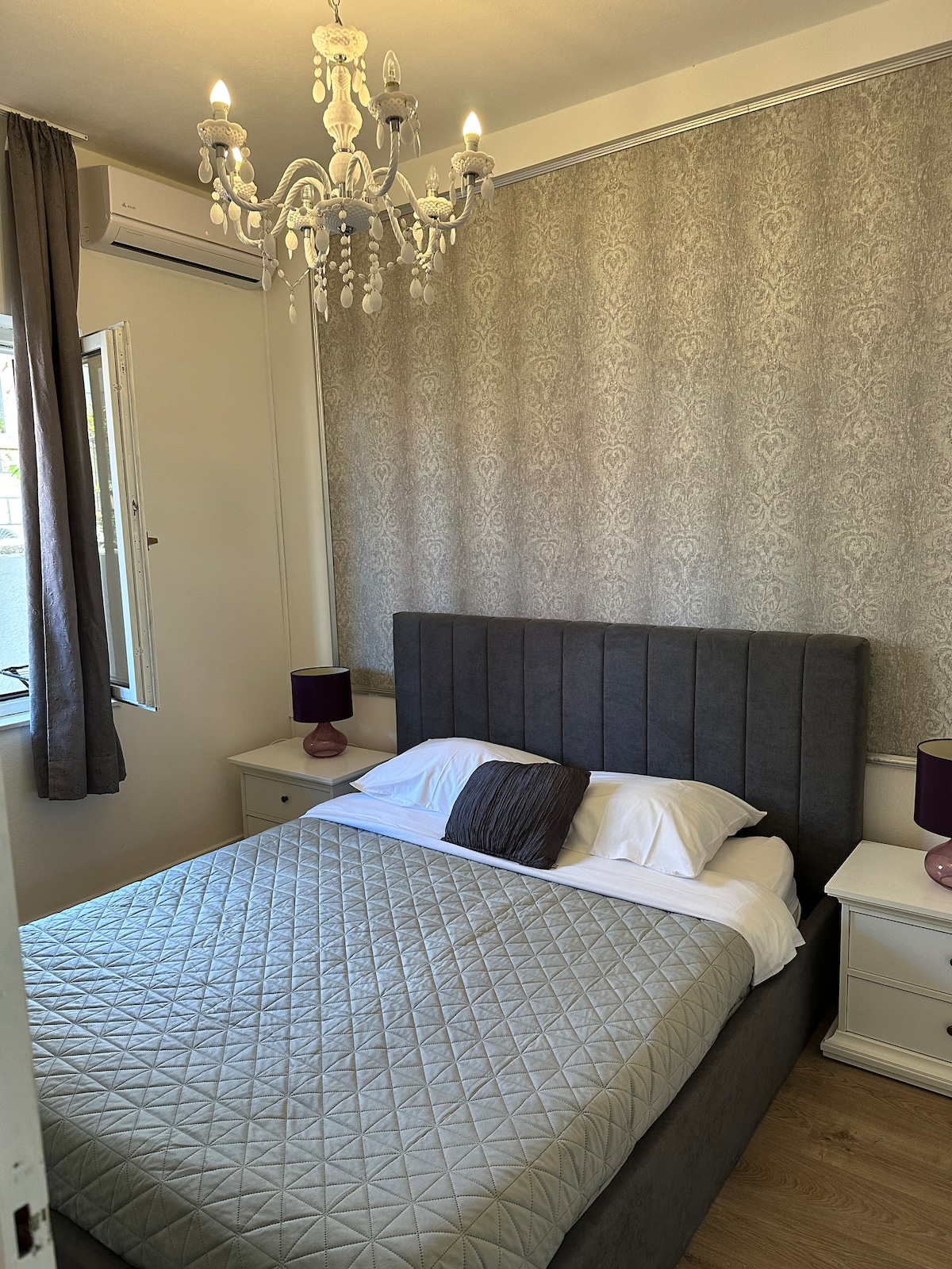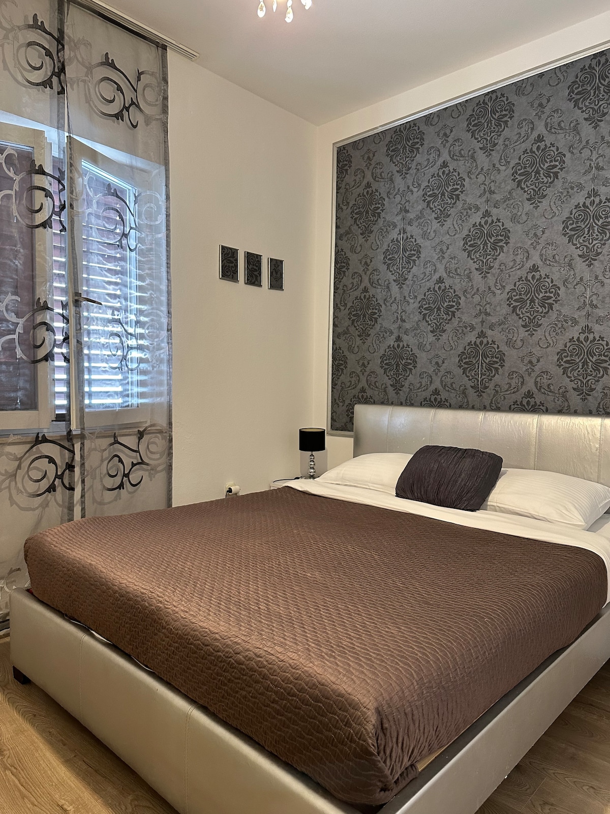 Lijepi studio s bračnim krevetom. Ispred Apartmana se nalazi predivna terasa sa cvijećem te prostranim stolom i stolicama gdje možete uživati i odmarati. Na terasi je dozvoljeno pušenje. U blizini se nalaze razni restorani,kafići trgovine, taxi i autobusna stanica za javni gradski prijevoz te dostupan parking uz naplatu. Apartman se nalazi u blizini glavnog autobusnog kolodvora (odlična povezanost sa ostatkom Hrvatske i zemaljama u regije) te luka koja povezuje grad sa otocima.