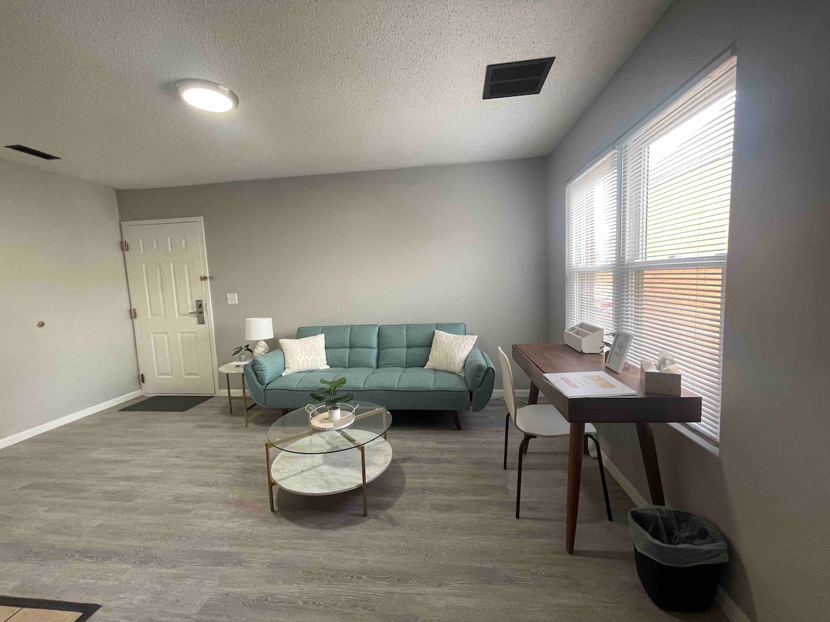 Step into a private and cozy space. Relax watching TV in bed or on the couch. This place is part of our walk out basement, so you may hear day to day living upstairs. For your safety there is a Ring camera installed at the entrance and will light up the entryway when it’s dark. Parking is on the well lit public street. Easily walk up our dedicated Airbnb sidewalk, no steps, walk around to the back of the house. You’ll be in a serene space that makes you feel right at home.