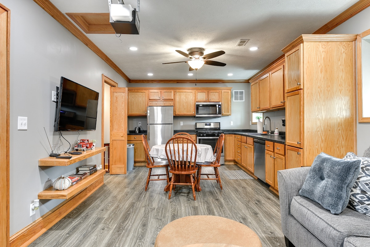 A mother-in-law suite perfect for individuals to families looking to stay in the prestigious Millard area. We are steps away from gorgeous Lake Zorinsky, golf courses, shopping, and other amenities. You can expect a friendly neighborhood, a full kitchen, gas fireplace, and natural light! Our shared backyard has a large fire pit, outdoor dining, and the gorgeous NE sunset. Lastly, check in is 6p and check out is 10a. *Please expect some noise from the main residence, above*