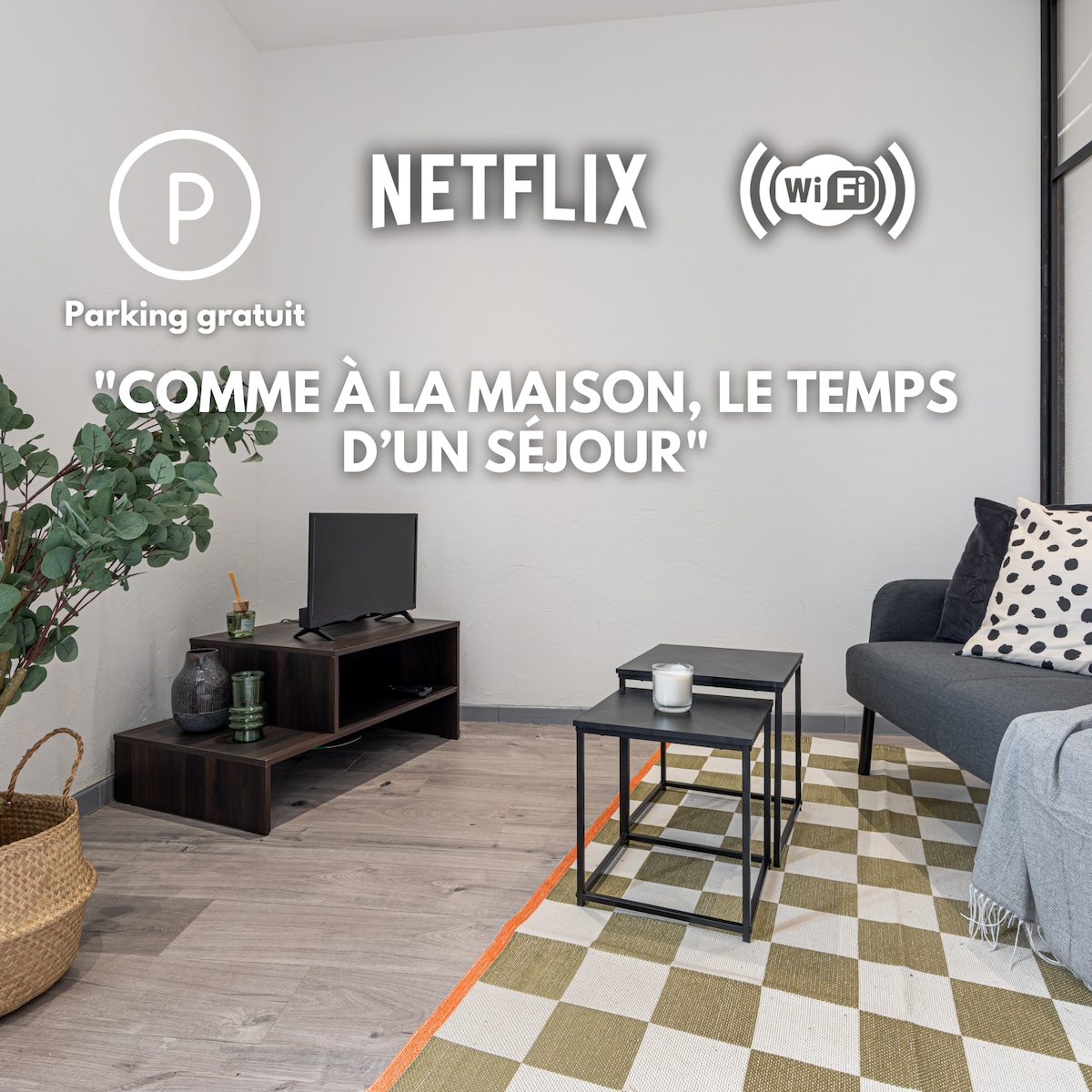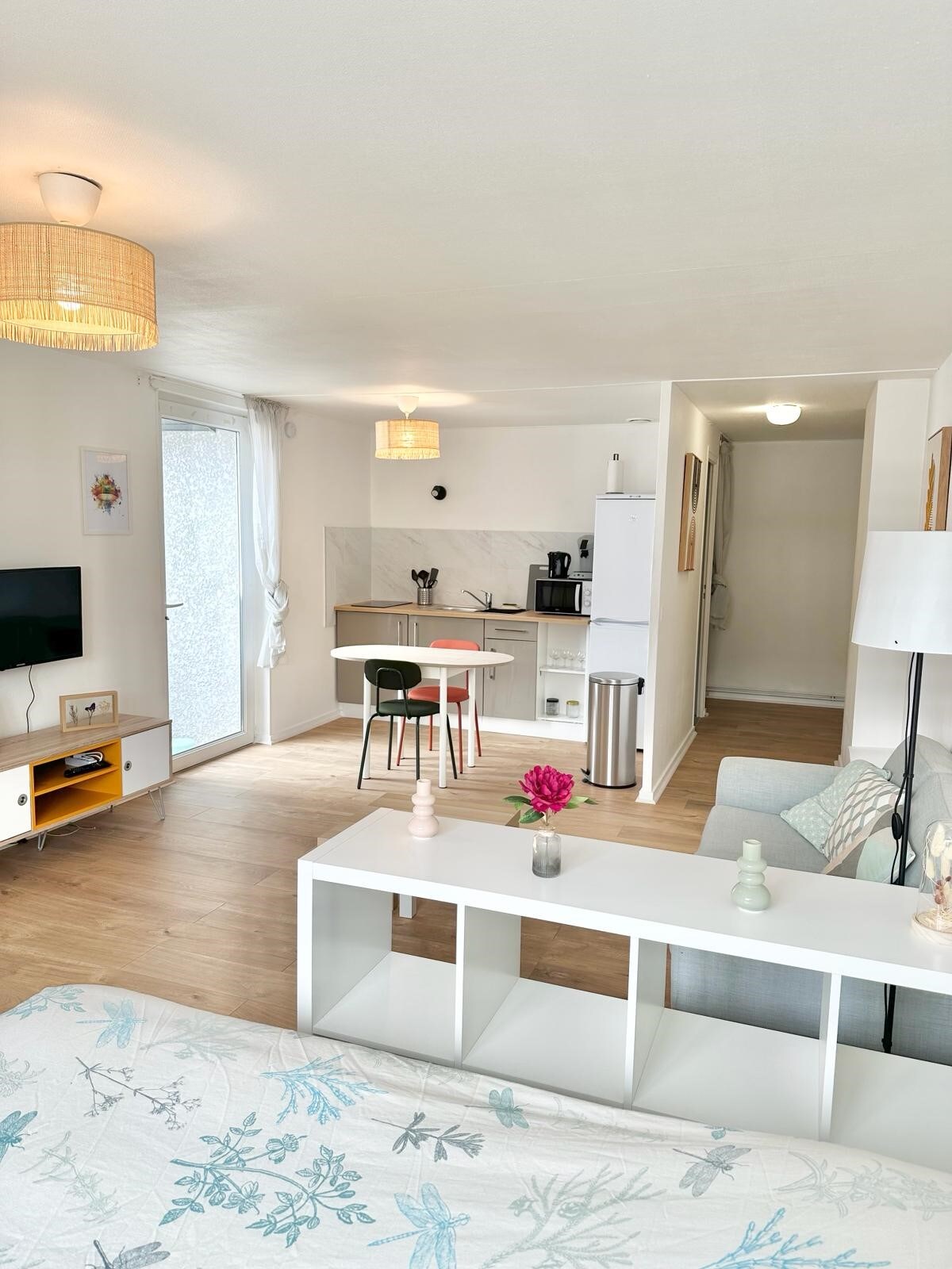 Appartement proche du centre ville rénové tout confort. - 1 chambre lit double avec rangement. - 1 salle de bain avec serviettes et sèche cheveux. - 1 WC séparé. - 1 cuisine équipée ( plaque induction, machine TASSIMO, bouilloire, micro-onde, frigo, machine à laver, vaisselles à disposition ). - 1 salle à manger avec télé, table avec 4 chaises, un canapé convertible en lit pour 2 personnes. - WIFI Fibre. - Linge de maison fourni.