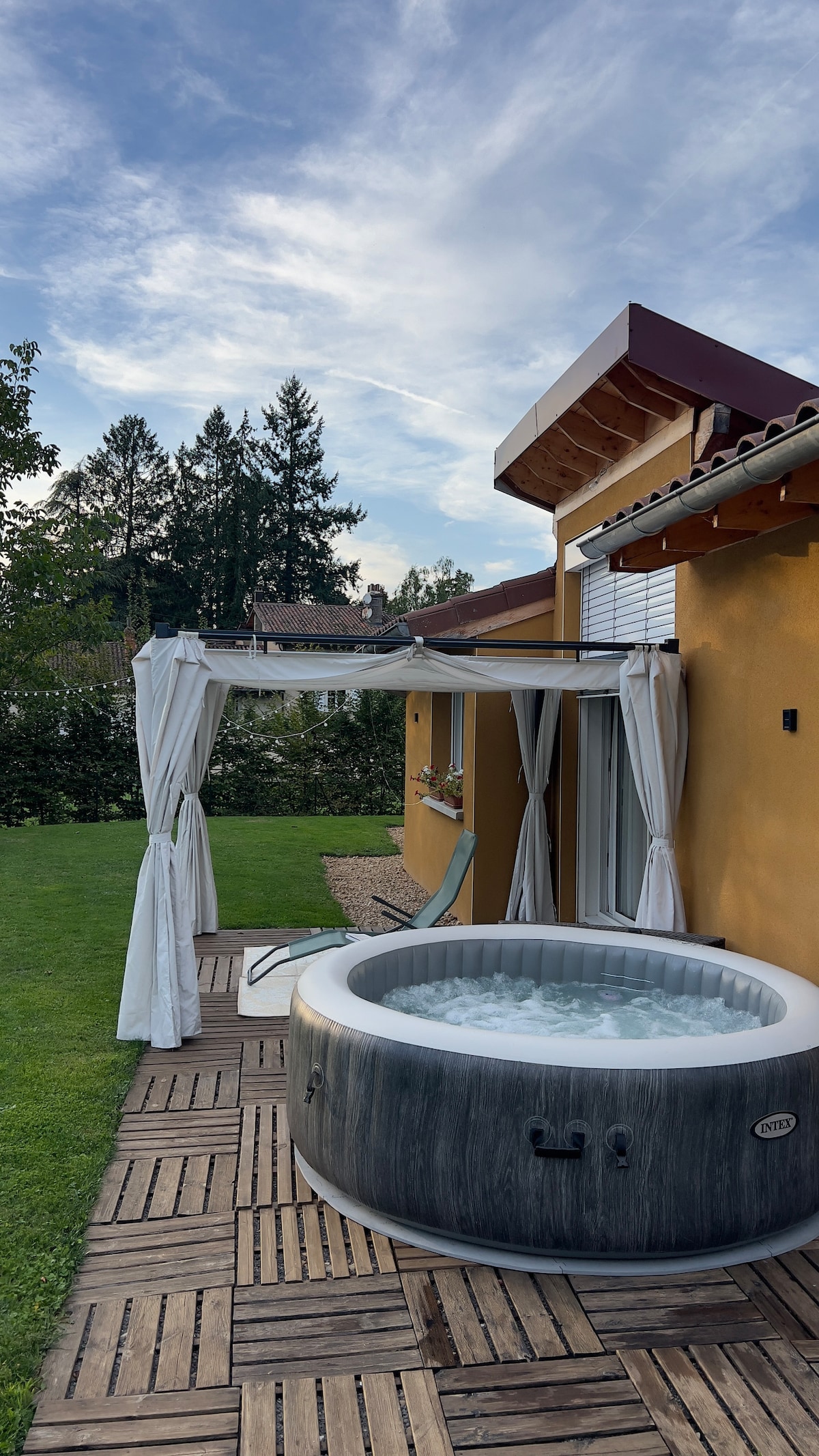 Petite maison mitoyenne avec celle de Lilianne ainsi que les 2 terrasses et le jardin est partagé avec les hôtes, un garage fermé est à disposition (si besoin, sinon place de parking devant le gîte), ainsi que le SPA sans supplément. Ce logement se situe entre Lons le Saunier , Louhans ( avec son superbe marché tous les lundis matin) et Bourg en Bresse.