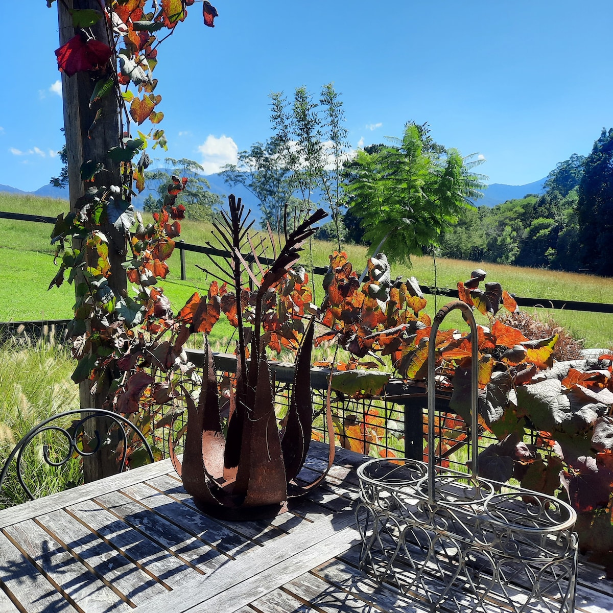 A secluded couples’ retreat on a lush rainforest hilltop, overlooking the tranquil Kalang River—just 5min from vibrant Bellingen. Sink into your private steaming cedar hot tub, unwind in a luxurious king-size bed, and cozy by the wood fireplace in winter or cool off in the sparkling pool in summer. Enjoy a thoughtfully provisioned breakfast on arrival, rejuvenate in the cedar sauna & cold plunge, then finish with a chilled bottle of bubbly on us. A serene escape to reconnect and recharge.