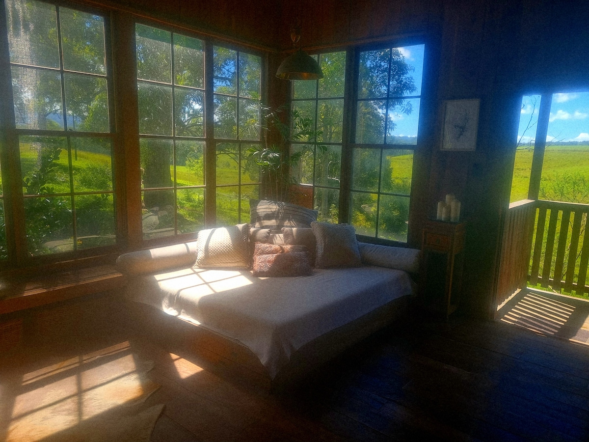 Bunya Cottage is set in the lush green Kalang river valley of Bunya Farm just 5 minutes from Bellingen. The cottage has expansive views and ample space for kids and pets. The Kalang river winds through the property where you can paddle, fish, bush walk and relax. Fully self-contained and well appointed space for couples