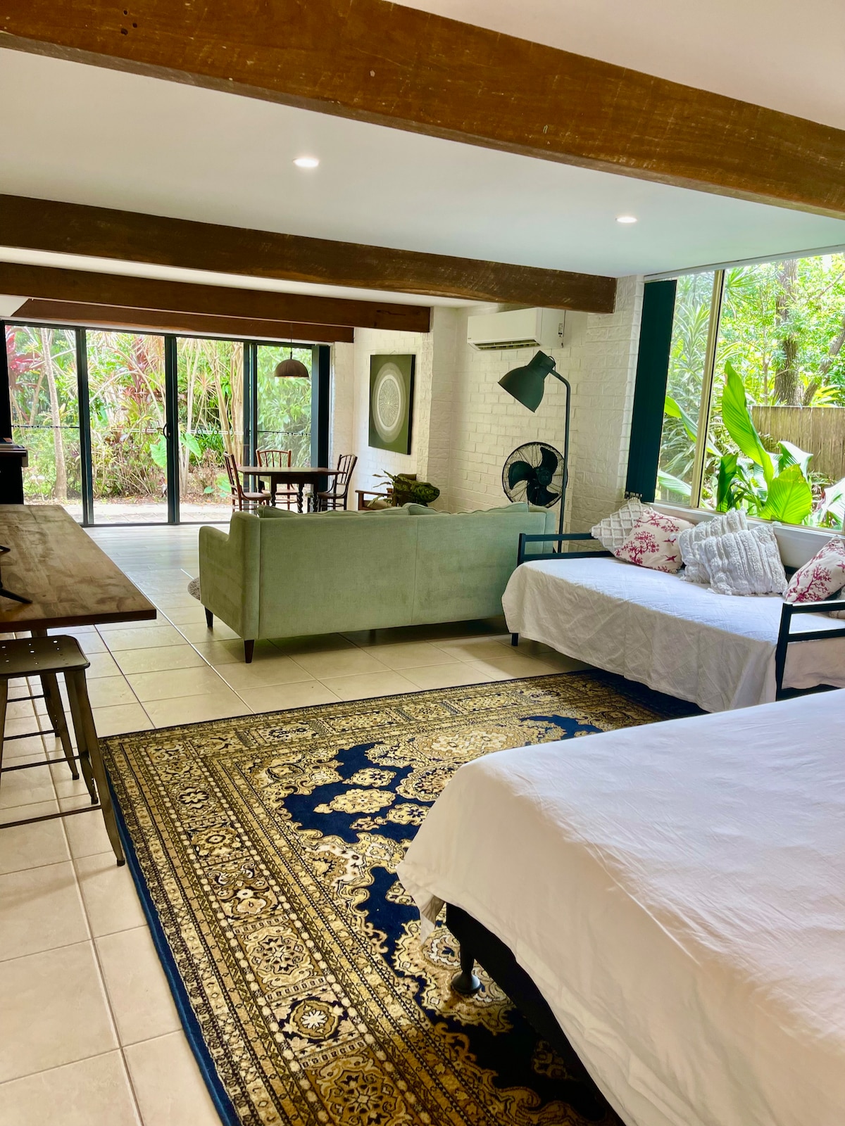 Northside Studio Apartment is a private, clean and comfortable space, a short 10 minute walk from Bellingen. The fully self contained apartment has fast reliable NBN Wifi: it is spacious, climate controlled with AC, light filled, cool, and quiet, with a garden courtyard area. It has a queen sized bed and a fully equipped kitchenette and ensuite. It suits couples, singles, business people and travellers. I also have a small trundle bed which can be used for a young child accompanying you.