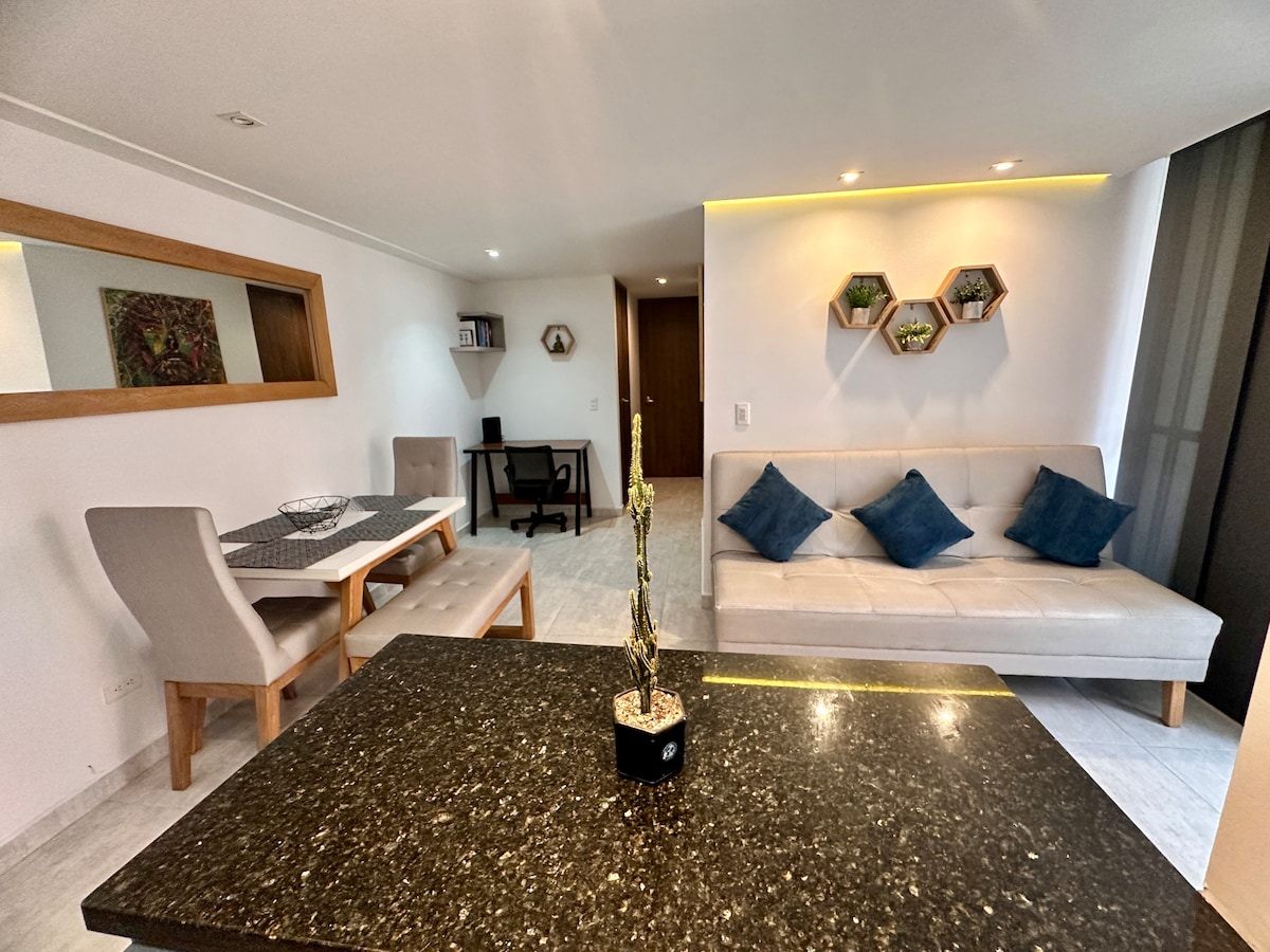 Take it easy at this unique and tranquil getaway. This beautiful, modern new 50 m² studio is ready for you. Near from ATMs, Grocery stores, Restaurants, and Cafes. 10 minutes walking to the night party in Provenza and Park Lleras. King bed, A/C, Netflix, amazing view from 14th floor, gym in the building, parking load, security 24/7. *Zero tolerance against sexual tourism. *Please see our house rules. *If you are Colombian resident you must pay IVA 19% additional.