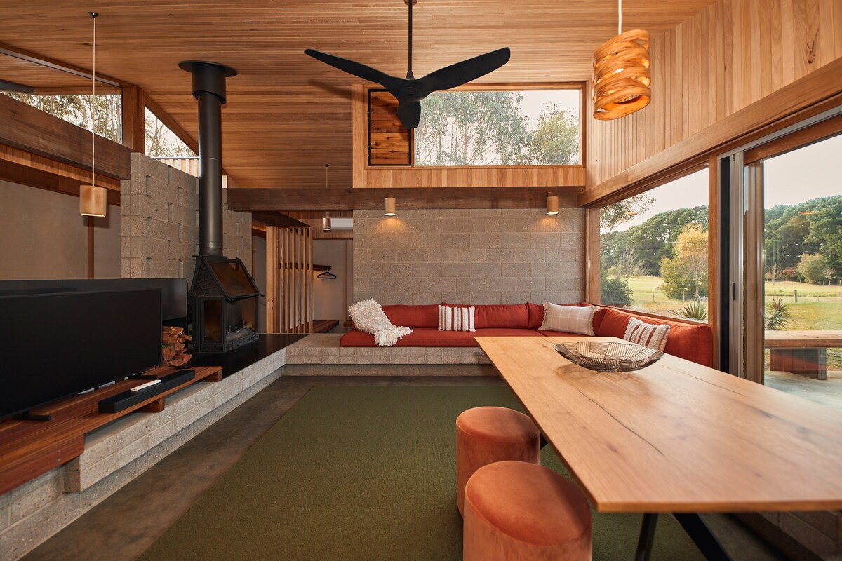 Our beautiful villa Ella's Rest is nestled on a 7 acre property in a quiet pocket of Torquay. Recently completed with a local architect our eco-friendly 2 bedroom home is truly unique and finished to the highest quality. The natural aesthetic creates a space that captures light and views from every room making it seamless from outside to in. A sheltered deck overlooking the dam and a north facing courtyard with outdoor dining, shower and firepit makes it truly hard to ever leave.