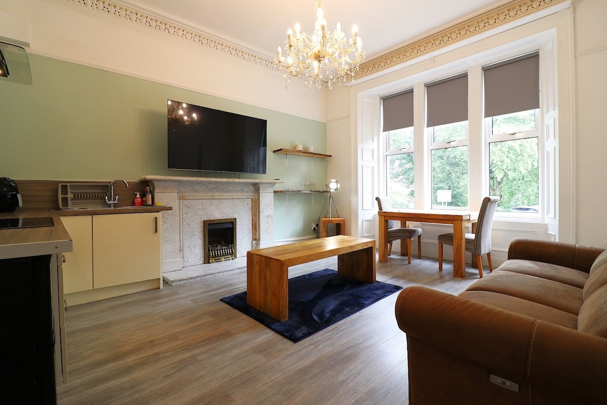 格拉斯哥市中心明亮、一尘不染的公寓。