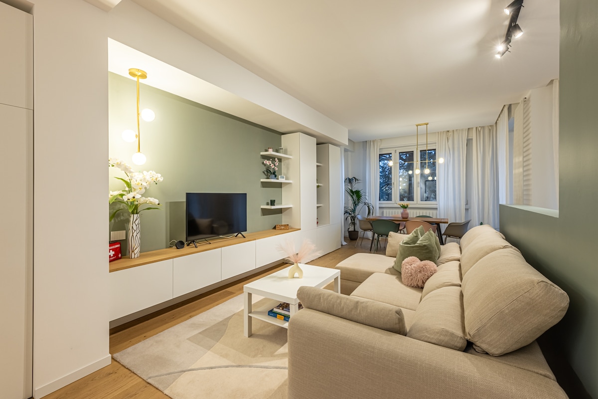 距离火车站仅几步之遥,拥有私人花园的宽敞两室公寓