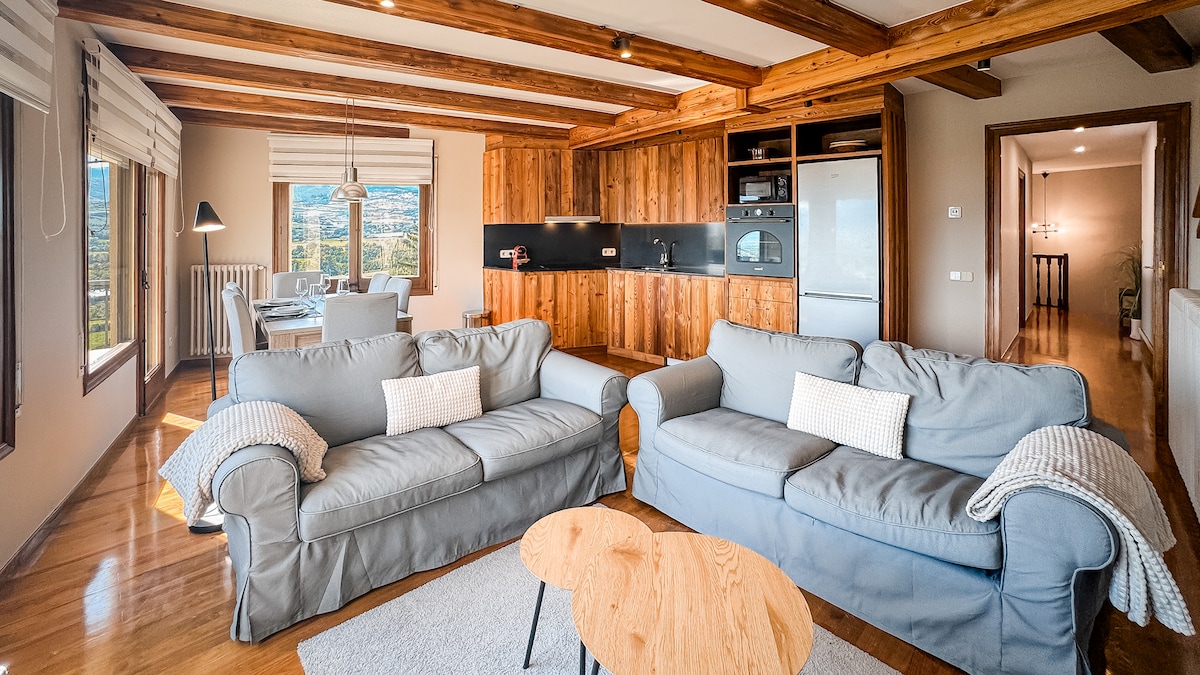 Este alojamiento único tiene personalidad propia. Apartamento para 6 personas. Con terraza. Situado a pie de pista de Sky. Con aparcamiento privado gratuito. Cuenta con todos los elementos para una estancia cómoda y hogareña. Tiene 3 habitaciones. Una de ellas equipada para teletrabajo. Cocina, baño, salón y terraza en la habitación principal. TV de 60 pulgadas, con diferentes plataformas de entretenimiento. Te sentirás como en una cabaña rodeado de naturaleza y nieve.