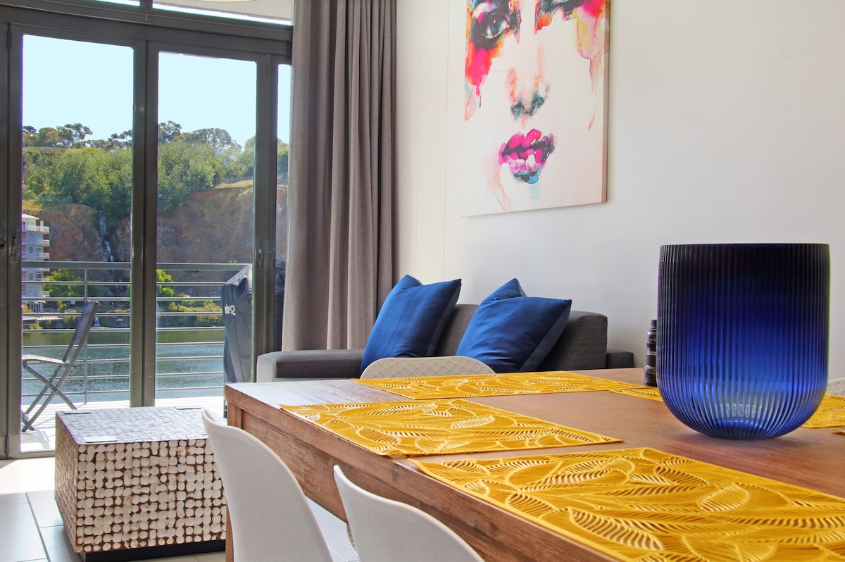 Enjoy a stylish experience at this centrally-located place. This modern, north-facing 2-bedroom unit is within walking distance of numerous restaurants and shopping malls and being right on the water's edge, boasts with unobstructed views of the lake and surrounding area. The kitchen is fully equipped with a wide range of utensils. The unit has fibre connection and offers free Wi-Fi and DSTV viewing. There is a communal swimming pool and secure underroof basement parking with 24 h security.