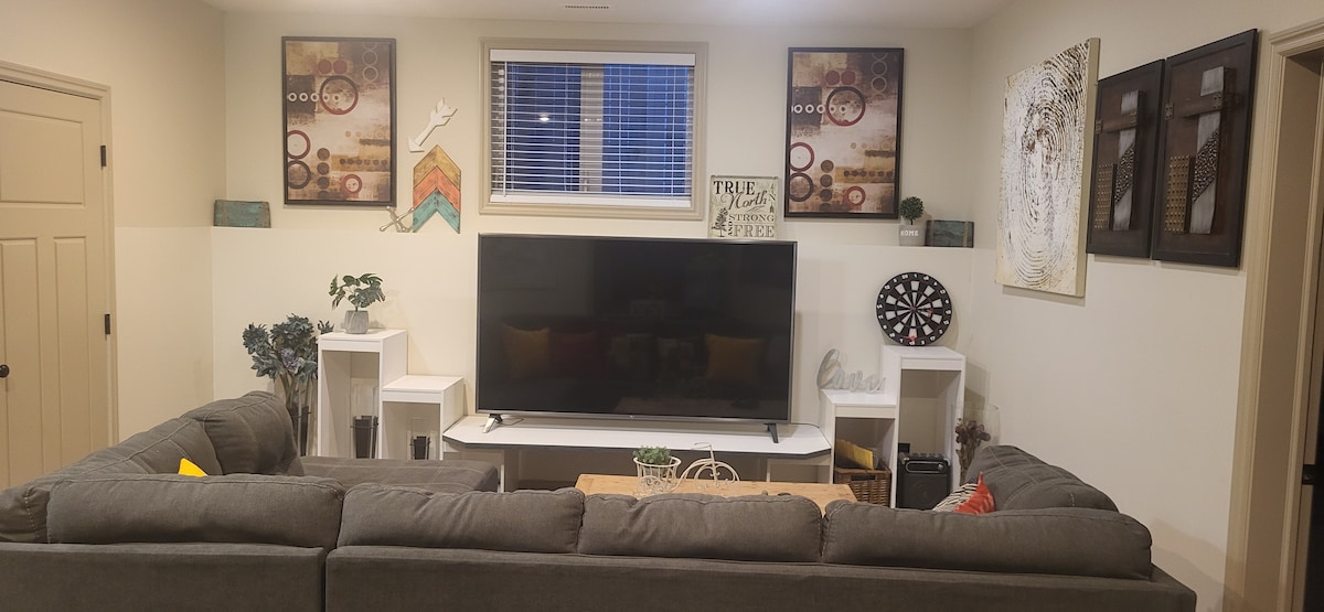 Unwind after a long day under the beautiful dual rainhead tile shower, or feel immersed in a cinematic movie in the theatre room with full surround sound and a 100" high definition projector. After, enjoy an amazing sleep on the luxurious pillow top king-size mattress. Never worry about your vehicle as you have private off-street parking with security cameras watching your vehicle. You have the entire basement suite to yourself with your own private entrance.
