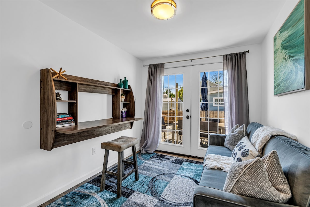 A tastefully decorated detached back house studio apartment in a private fenced in yard only 2 blocks from the beach! Perfect for a couple or 2.. Enjoy the outdoors and the fresh ocean air by sitting in the nice furniture patio set, by the tiki bar or next to the firepit. Gather around tables inside or out with plenty of seating. Studio is set with great amenities starting with the huge 82 inch smart 4K TV with surround sound, WiFi, and Amazon Dot. Stocked kitchen w/ stainless appliances!