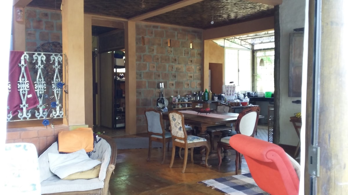 Sitio/chacara em condomínio fechado com casa em construção rústica inserido na natureza . Possui 2 quartos amplos, 2 banheiros,sala enorme com cozinha americana, possui piscina com ducha. Muito conforto e Comodidade junto a natureza. Possui também uma cozinha com panelas elétricas de pressão, arroz e air fryer, cafeteira e sanduicheira para o café, taças de vinho para uma momento mais aconchegante junto à lareira ecológica e lareira a lenha na qual fornecemos a lenha, e o fogo de chão.