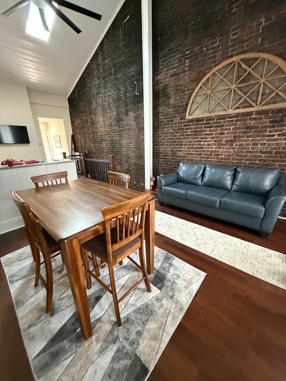 Welcome to The Top Hat! Located on the 2nd floor at "The Hattery." Built in 1838 by James Holliday, a hatter inspired the whimsical design you will see in The Top Hat. Enjoy loft living and the history of a building formerly a hattery, bank (1924), and cigar factory. The Top Hat offers uniqueness and charm to our small town, and I know you will think so too!