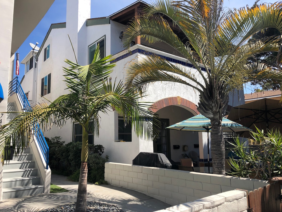Just one block from the bay, this quiet and cozy beach house with a fully fenced private patio is ideal for anyone who wants a coastal getaway, while still being close enough to the attractions, restaurants, shopping, and nightlife of San Diego. We have all the amenities you need, a new AC unit, a comfy King-size bed, coffee bar, BBQ, 2 beach cruiser bikes, 2 stand-up paddleboards, beach chairs and floats. Walkable to restaurants, parks, the beach, and the bay. 1 private parking spot.