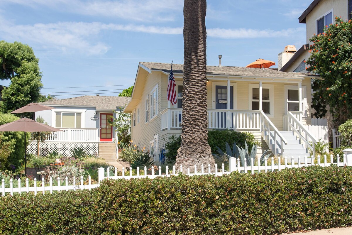 Just three blocks from the ocean, our cozy cottage is the ideal San Diego getaway! Green Door Cottage sits in the heart of a bustling area in quirky Ocean Beach—steps from top restaurants, tasting rooms, yoga studios, and shops. Enjoy free parking for one car and bring your dog! Dog beach and the dog park are both a few blocks away. The home is designed with stylish décor and A/C for comfort and fun, we welcome everyone to our home!