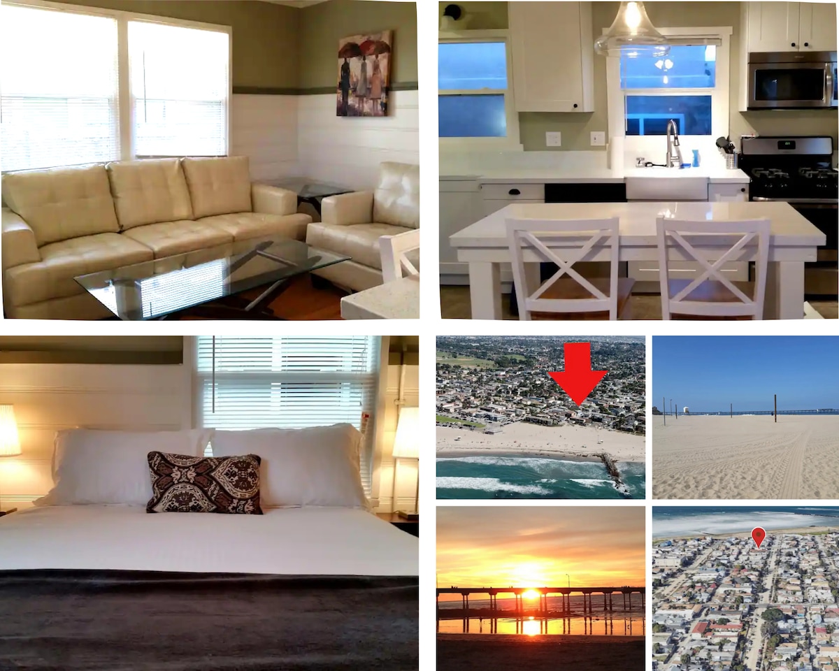 Newly remodeled 1940's cottage just 50 steps to the sand with fabulous beach and ocean views. Enjoy the ocean breeze from your front porch and watch people walk by. Go sunbathing and swimming, take a bike ride or a stroll on the beach, have a glass of wine and witness the most beautiful sunsets. We are located in a quiet residential neighborhood of Ocean Beach. This bright and cozy cottage has everything you'll need to feel at home.