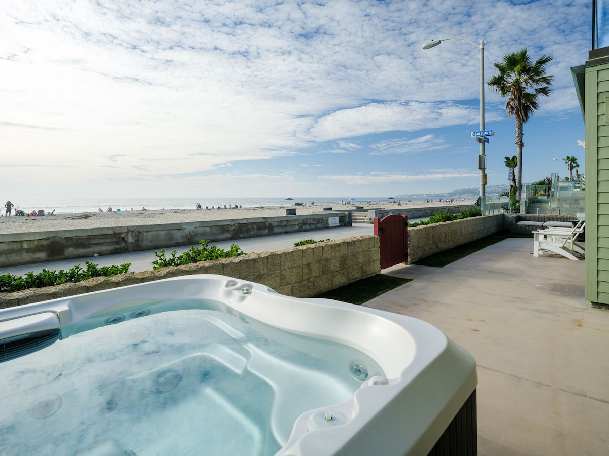 Pacific Beach Zen Villa! Located steps from the Sand and the Ocean. The patio brings a whole new meaning to the word Oasis, in which you will enjoy an outdoor fireplace and TV, outdoor shower and soaking tub and a beautiful brand new top of the line Hot Tub. All the amenities are just for your private use and the property is completely fenced for your privacy. In a peaceful street with gated parking. Inside is a Dream too! Posturepedic Luxe matress, Cheff's kitchen, rain shower, Central AC.