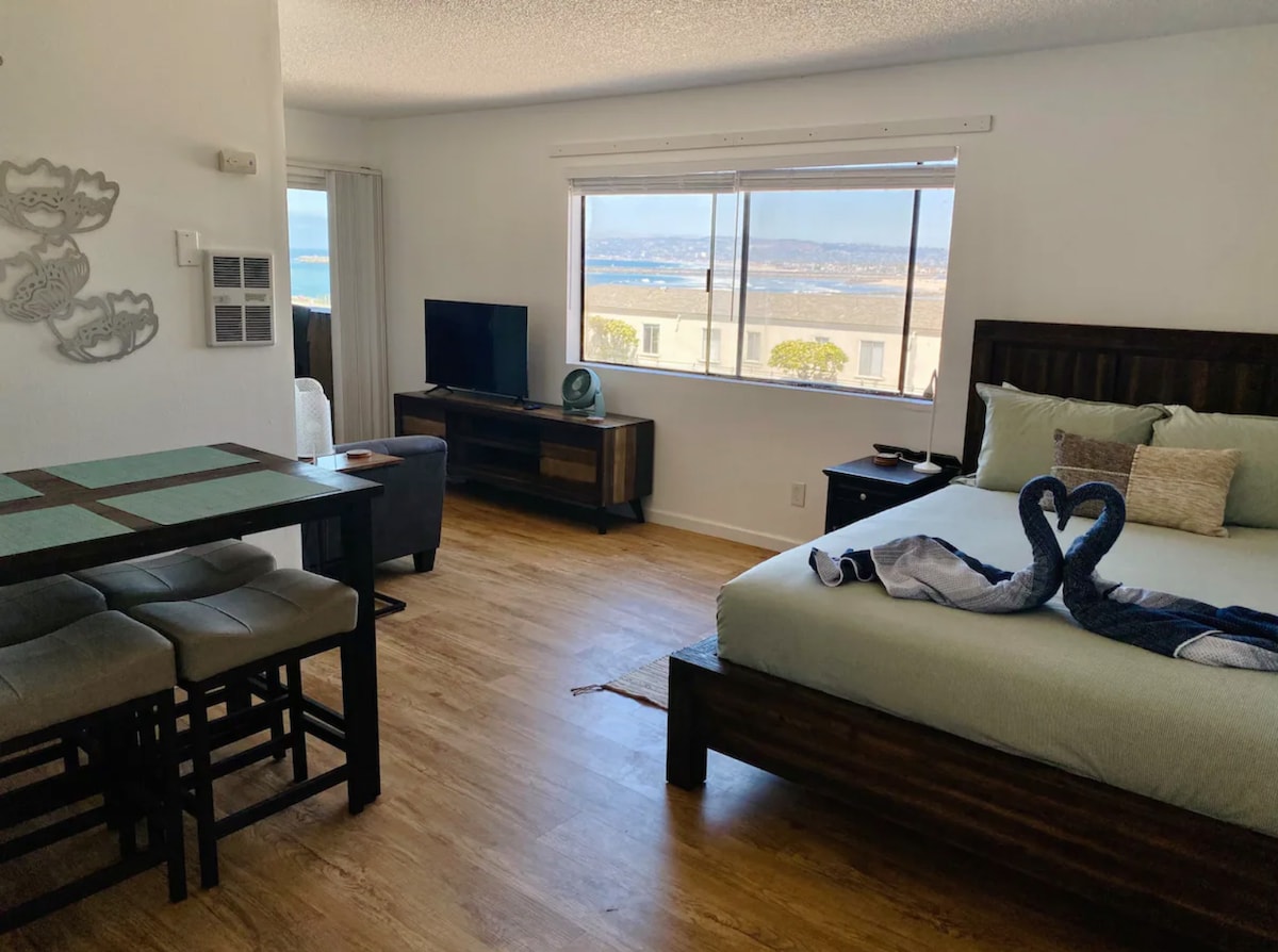 Open floor plan, kitchen, family room, dining room is a large living space, with a balcony view to the ocean. Grill, full kitchen, keurig&drip coffee, washer and dryer. Our condo is in beautiful South Mission Beach, steps from the Pacific Ocean, or the Bay. THE BEST location, a close walk to the restaurants, shops, and amusement park. 3 Flatscreen TV's with Direct TV channels and On Demand. Smart TV in the family room, where you can stream your own Netflix, Amazon Prime, etc.