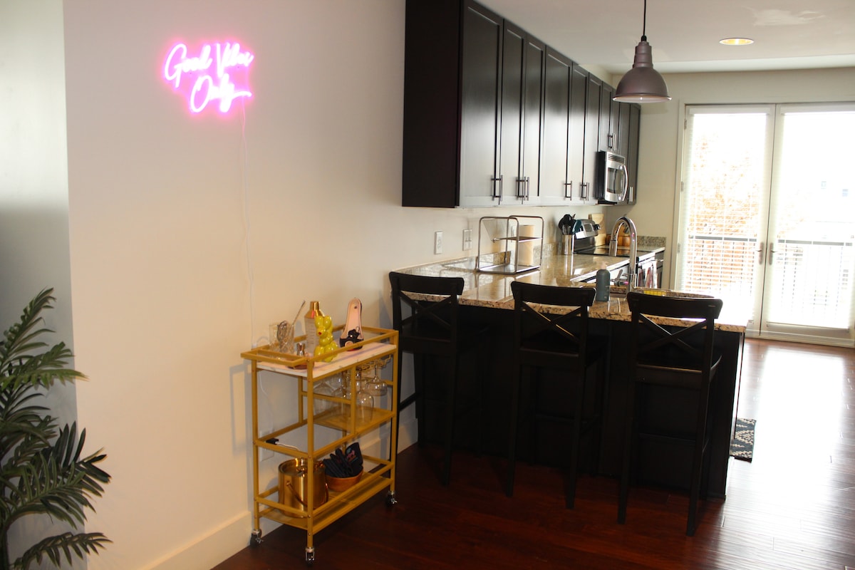 Stay in the heart of 12 South in this stylish penthouse, just 3 miles to Broadway, Nissan Stadium, and Downtown fun. - 2-bedroom penthouse with soaring ceilings and luxe finishes - Access to shared courtyard with seating and grill - Complimentary classes at Full Ride Cycle Studio - Free parking behind the building (first come, first serve) - Walk to local favorites like LadyBird Taco and E+Rose Wellness Cafe - Work-ready with high-speed WiFi - 24/7 Hospitality support