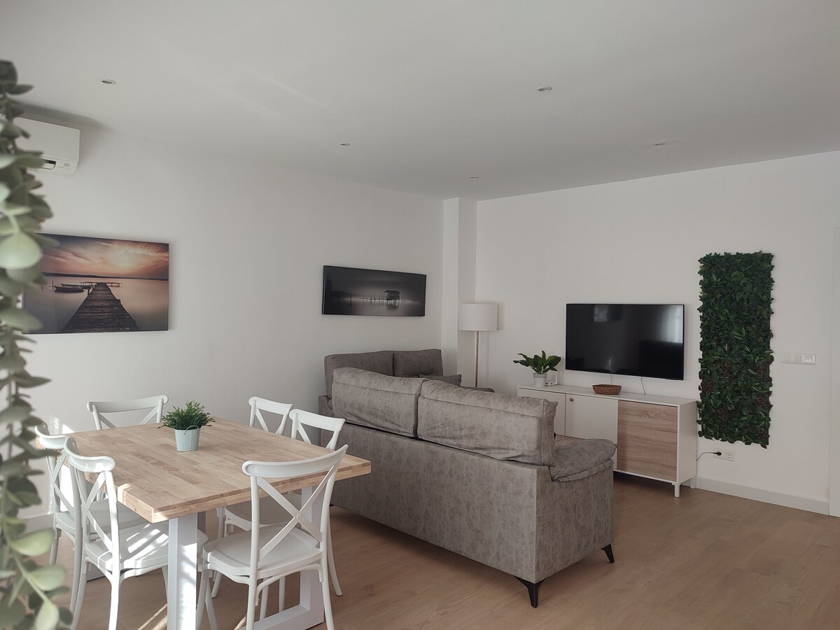 "Casa de las flores" Apartamento nuevo en el centro de Mota del Cuervo, El balcón de la Mancha. Incluye todas las comodidades, consta de dos amplios dormitorios que incluyen ropa de cama y toallas, dos baños completos , salón y cocina completa e independiente con desayuno de bienvenida, aire acondicionado y calefacción, ascensor, wifi... El precio que se indica para dos personas es para una habitación, si se requiere una habitación por persona tiene un precio adicional de 10€ por noche.