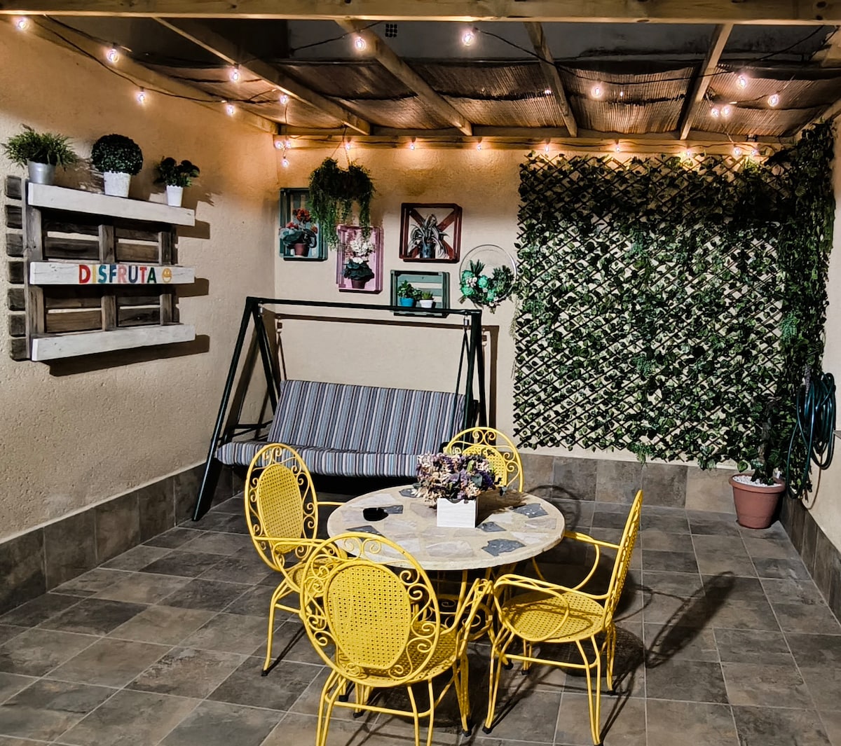 Disfruta de un remanso de paz en este encantador alojamiento: recién reformado, con un estilo rústico y accesible, a escasos metros del centro de Tomelloso. Esta encantadora casita con jardín consta de dos luminosos dormitorios con camas extra grandes y muy cómodas. Un salón con cocina americana totalmente equipada, una estufa de pellets automática, aire acondicionado y tv en todos los dormitorios y salón. Toda la casa, el jardín y el baño son totalmente accesibles. Se admiten mascotas.