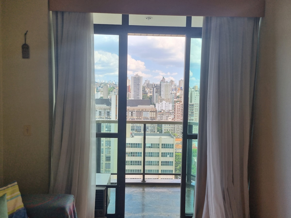 This small loft has the comfort you deserve and the luxury of common areas that will surprise you with swimming pools, sauna, gym, massage room, home office, valet and other amenities. The apartment, an open space of 40 m², has a Queen Size bed and a sofa bed, with no division between the rooms. Mini-kitchen with cooktop, refrigerator, coffee machine, microwave, a bench with two places for meals and kitchen items. Simply the best location in Savassi. Compact but excellent!