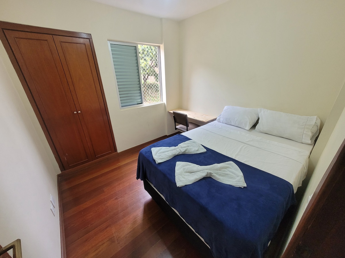Apto 4 quartos em prédio de 8 andares (Um por Andar), 1 suíte (Queen Bed) + 1 Suíte (Cama casal) + 2 Quartos (Cama Casal) , Sala grande, Cozinha montada, Garagem 1 carro grande ou 2 pequenos, 2 Elevadores, Zona Sul, Próximo a barés e Restaurantes e Shopping Pátio Savassi, Atende muito bem ate 4 casais.