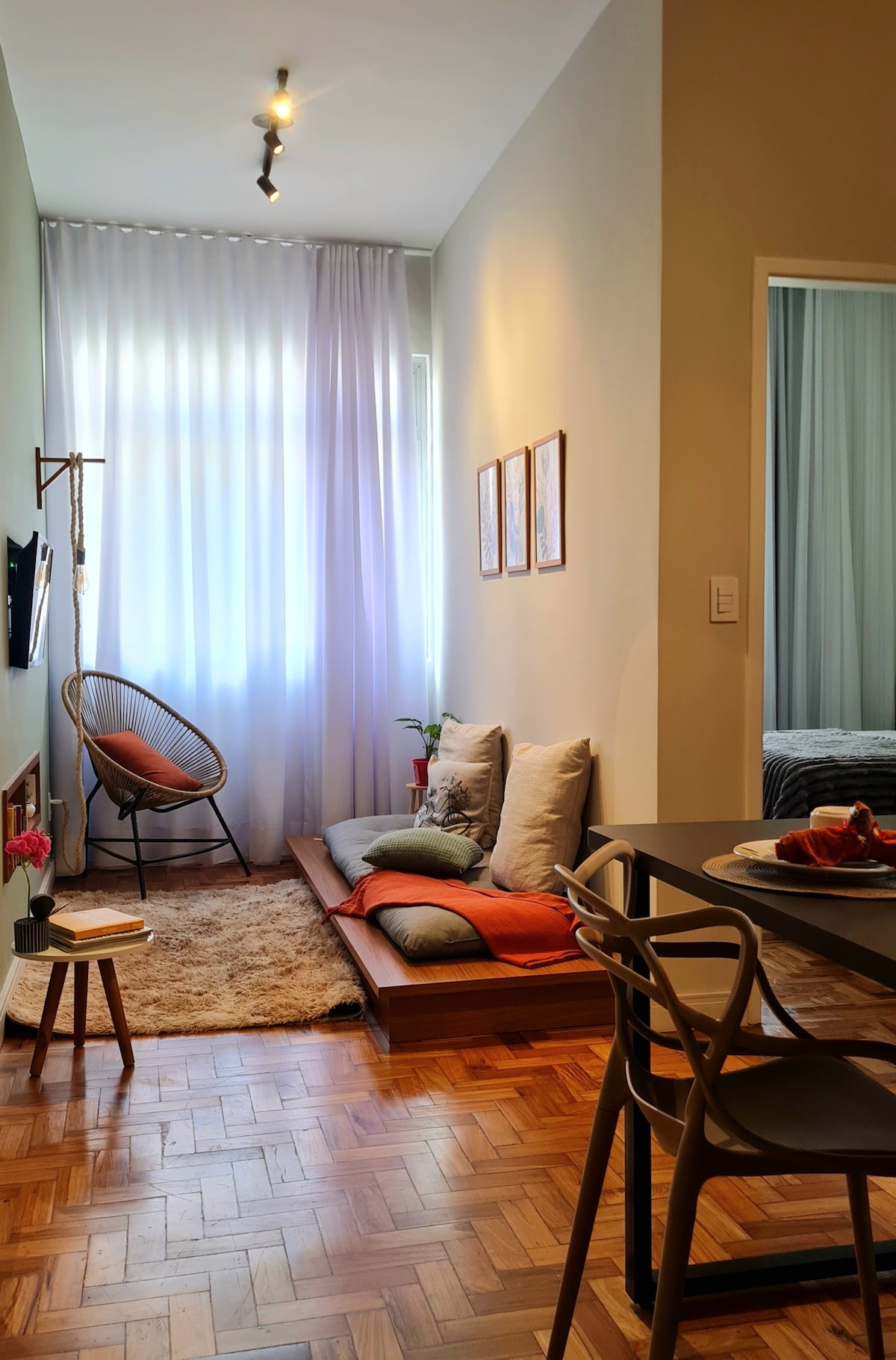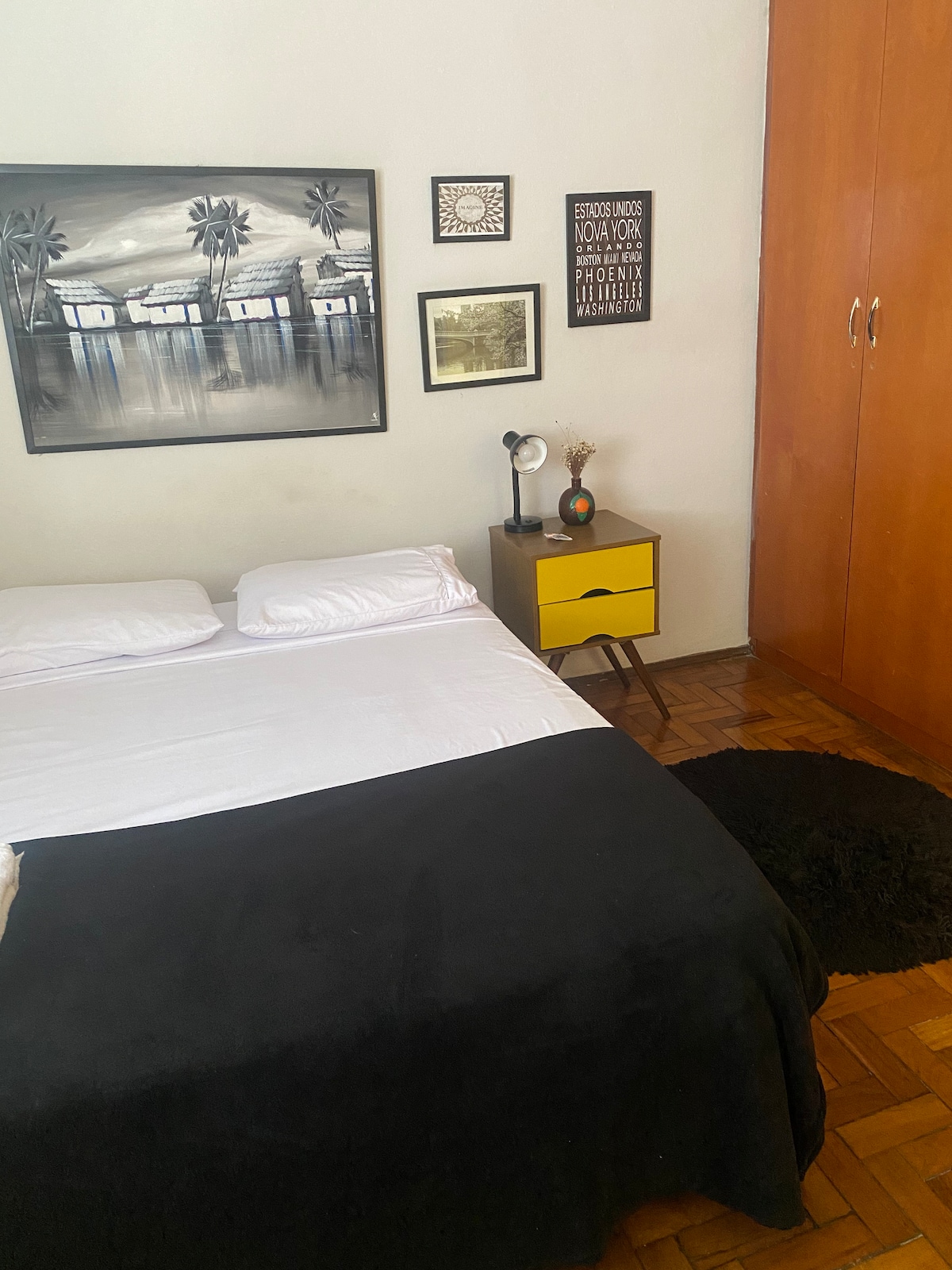 Localizado em uma varanda espaçosa, nosso espaço oferece tranquilidade e independência para a sua estadia. O acesso rápido para o quarto exclusivo e não compartilhadoque garante privacidade para você. A decoração vintage e acolhedora cria um ambiente charmoso e relaxante, perfeito para desfrutar de momentos especiais durante sua visita. Para garantir seu conforto, disponibilizamos um ventilador de teto e um frigobar para que você se sinta em casa.