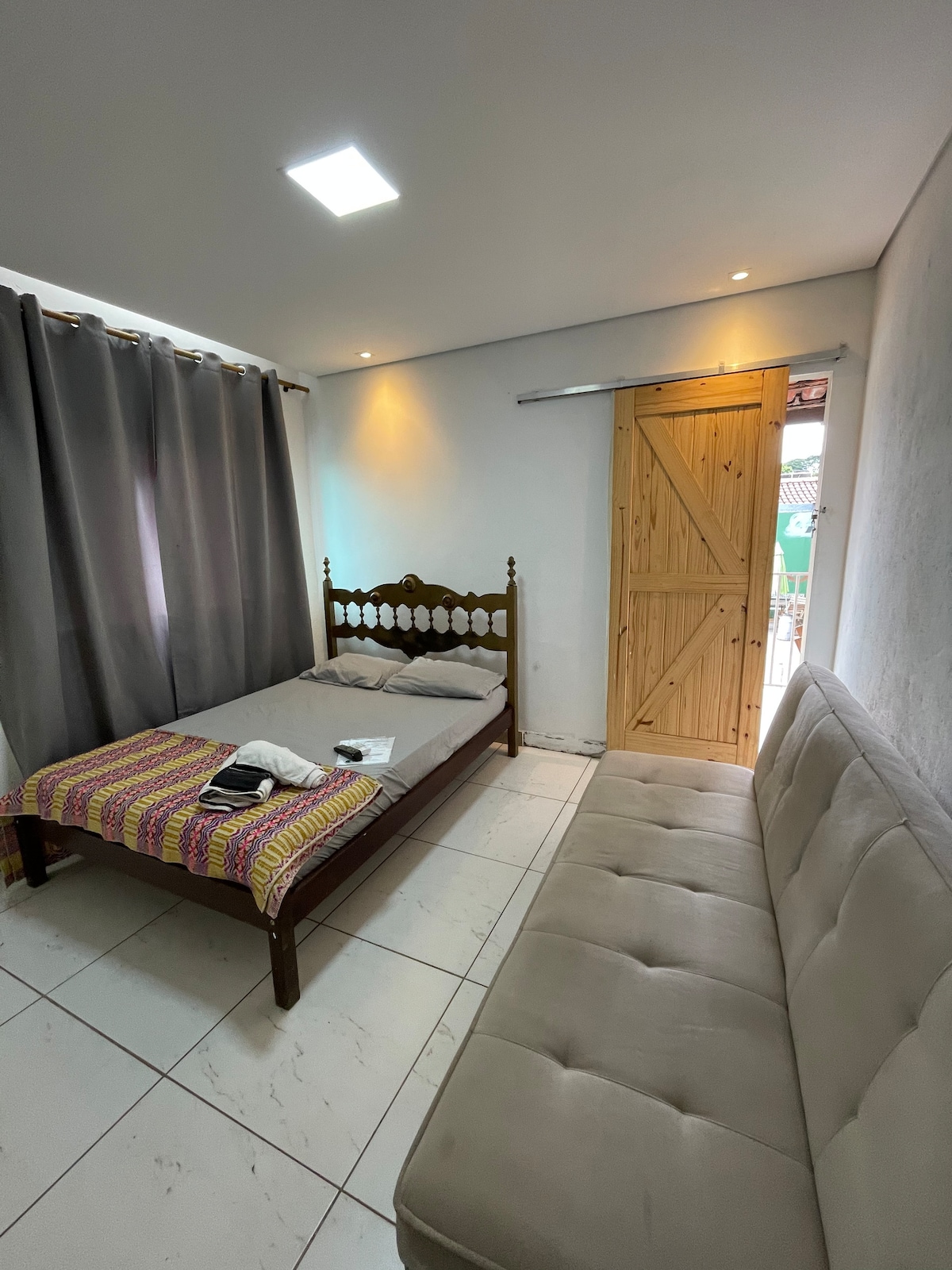 Relax in this unique and peaceful place! This independent suite features a tree-lined backyard, hammock, and small shared outdoor kitchen. This charming, peaceful, and uniquely beautiful place is located in the Pampulha region, close to Mineirão and UFMG, just a 10-minute drive or 25-minute walk away.
